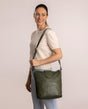 Bandolera piel bolso cuero mujer shopper verde cuero