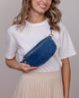 Riñonera bolsa de cintura bolso bandolera mujer azul cuero - Made in Italy