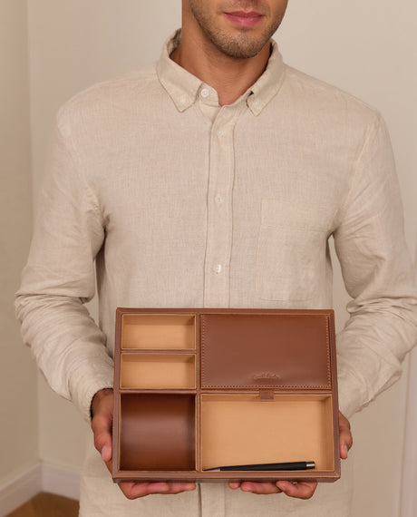 • Los accesorios de escritura de cuero son increíblemente duraderos y resistentes, por lo que son una inversión que se paga por sí sola en muy poco tiempo.