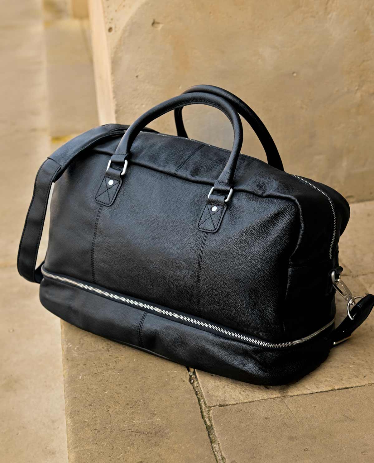 Bolsa de viaje deporte bolso fin de semana negro cuero