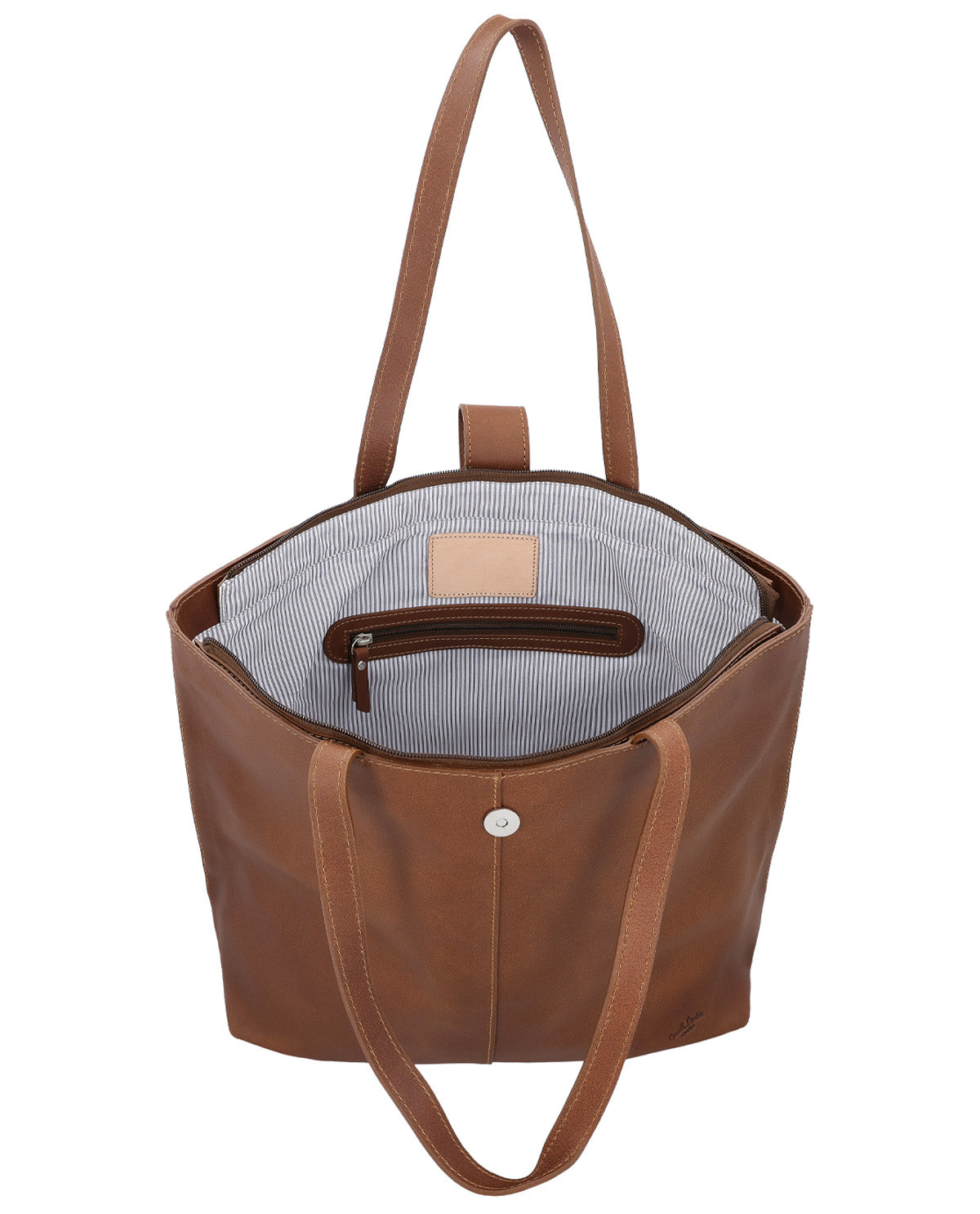 Los prácticos compartimentos interiores ofrecen la posibilidad de guardar cosas pequeñas como el teléfono y las llaves de forma ordenada y accesible, sin tener que buscar por toda el bolso. "Alexandra" ofrece espacio para dispositivos de hasta 15", carpetas, billetera, maquillaje y compras – simplemente todo lo que necesitas. Con su tamaño único y su cuero resistente, no solo es una compañera práctica, sino también un accesorio estiloso para cualquier aventura que el día te depare.