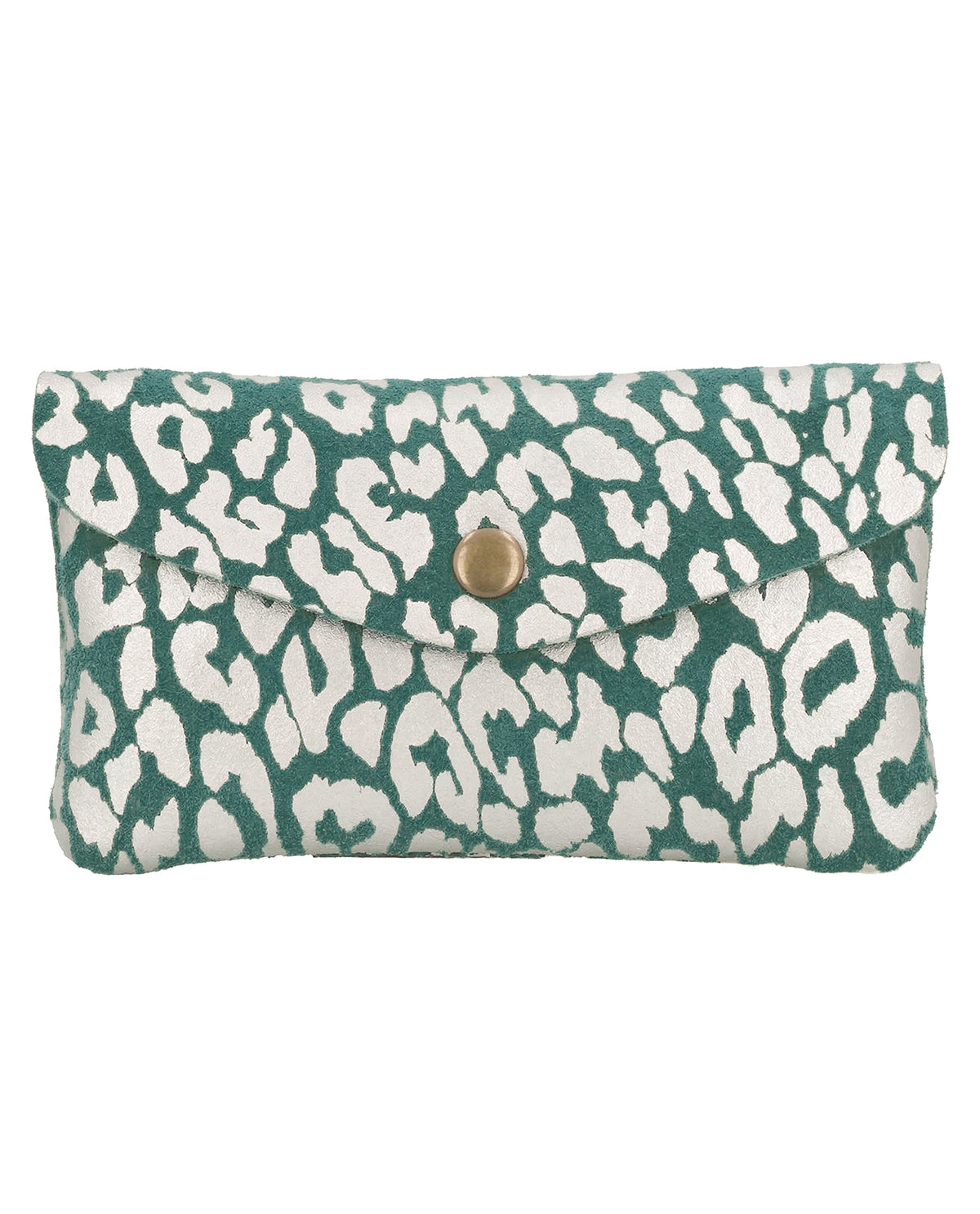 Bolsa organizadora organizador pequeño bolso cuero mujer verde con estampado leo metálico cuero