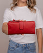 Cartera vintage de piel con espacio extra para monedas tarjetero monedero mujer rojo cuero