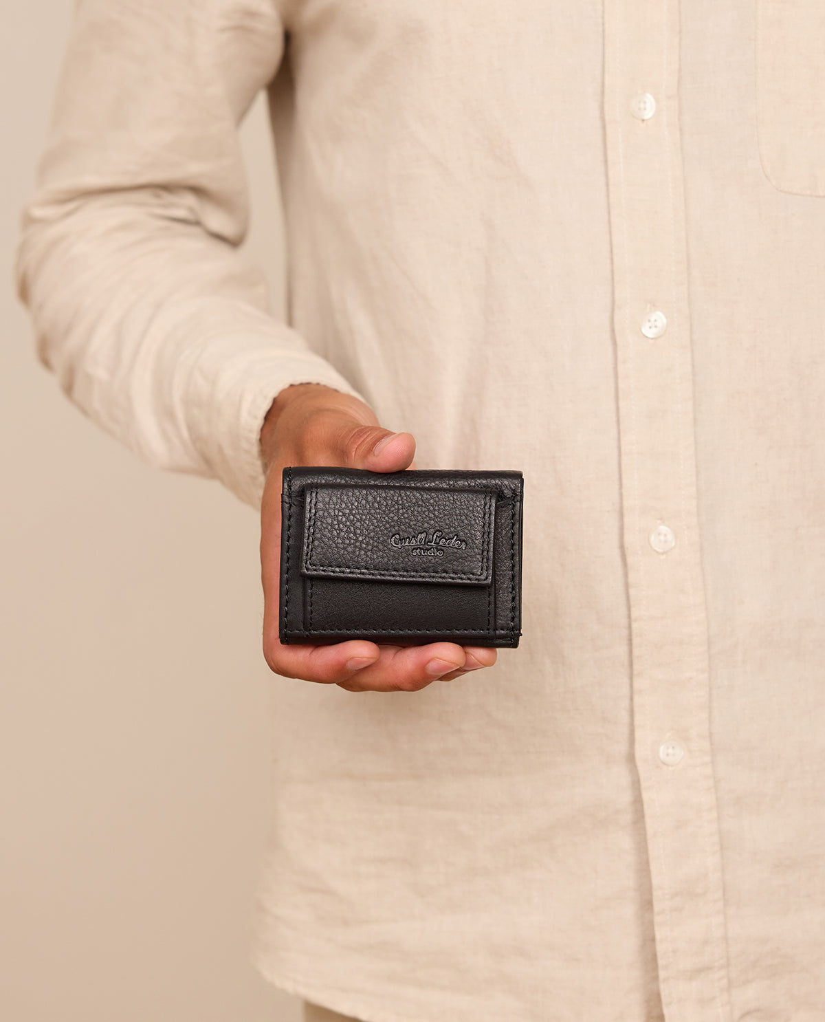 En su interior encontrarás una distribución perfectamente estructurada que te permite mantener tus tarjetas, billetes y monedas organizados y de fácil acceso. Su cuidadosa fabricación y el uso de materiales duraderos garantizan que disfrutarás de esta cartera atemporal durante mucho tiempo. Ya sea para uso diario o para ocasiones especiales, la cartera "Ronald" se adapta a tus necesidades, siendo siempre un compañero fiel y estiloso.