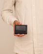 Cuero negro de alta calidad: Esta cartera destaca por su resistente y elegante cuero que, con el tiempo, desarrolla una hermosa pátina, haciéndola aún más única.