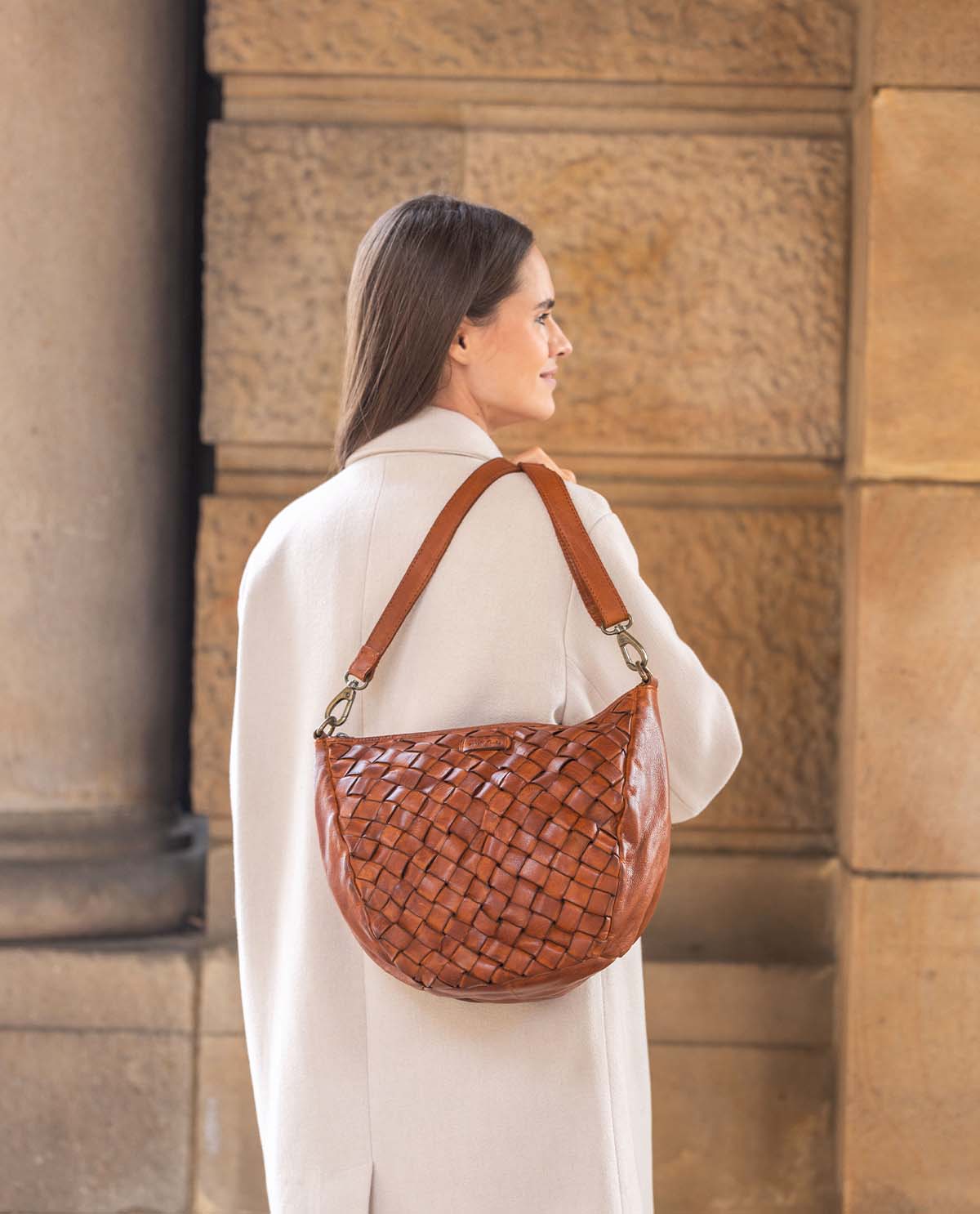 "Clover" llama la atención gracias a su cuero de vaca resistente y su trenzado marcado. Su compartimento principal ofrece una capacidad de aprox. 17 litros, con espacio para pequeños cuadernos, llaves, cartera, pintalabios y móvil. La cremallera que rodea toda la parte superior mantiene todo seguro en su sitio. Lo cuelgas rápidamente al hombro y ¡lista para salir! Ya sea para un paseo por la naturaleza o en medio del bullicio de la ciudad, "Clover" va contigo.