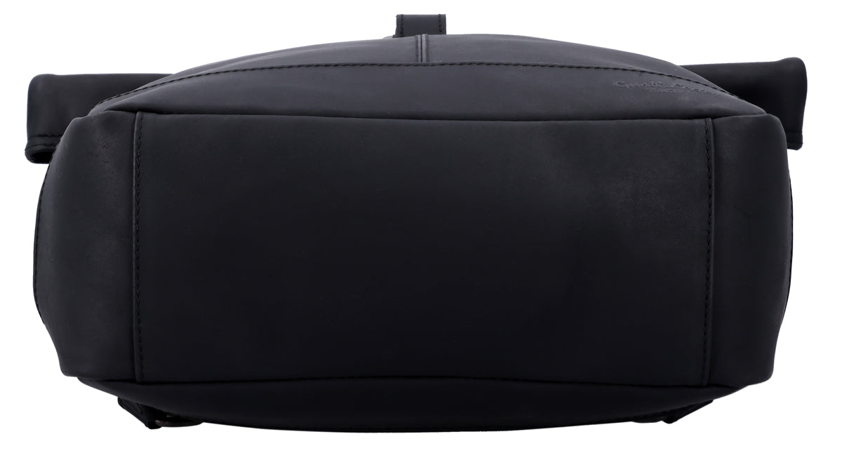 Ya sea para la escuela, la universidad o el trabajo, nuestra mochila Rolltop "Bendik" es siempre una excelente opción. Y es que destaca por su flexibilidad, su alto confort de transporte y su amplio espacio. Esta mochila clásica y robusta, fabricada en cuero negro, llama la atención principalmente por su trendy diseño Rolltop, un look que está de moda en este momento y no pasa desapercibido.