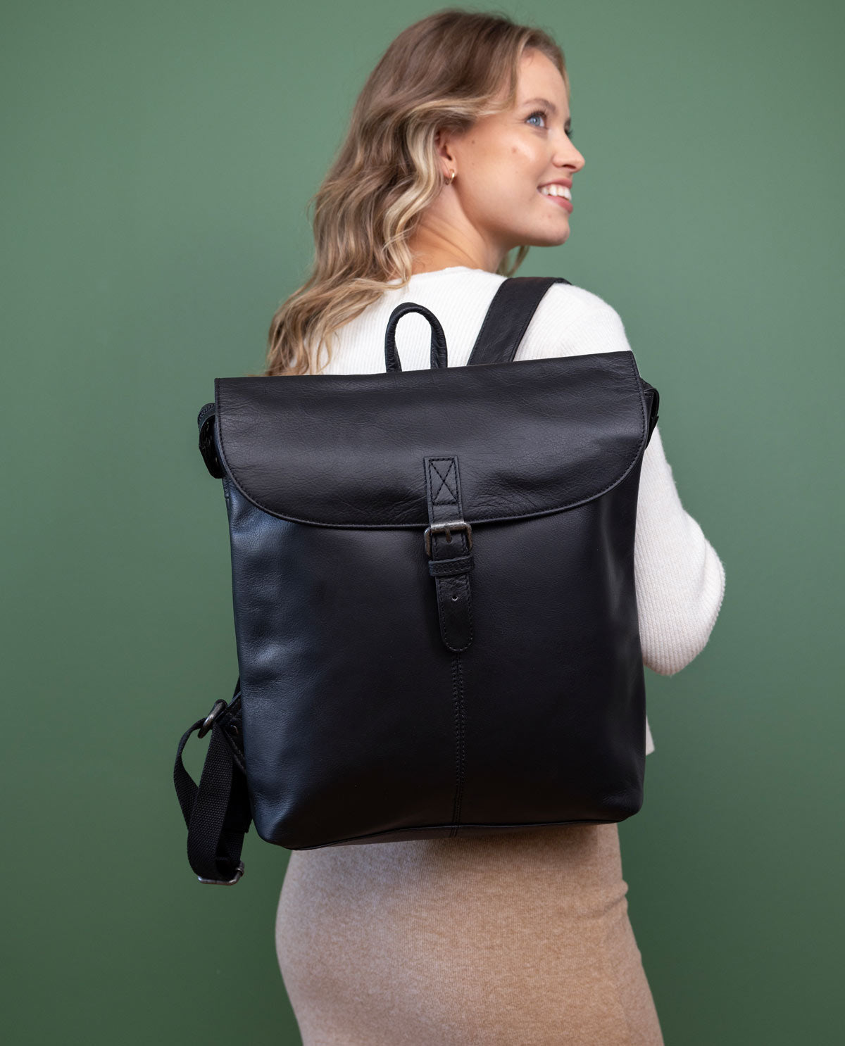 Mochila cuero mensajero mujer hombre piel negro cuero