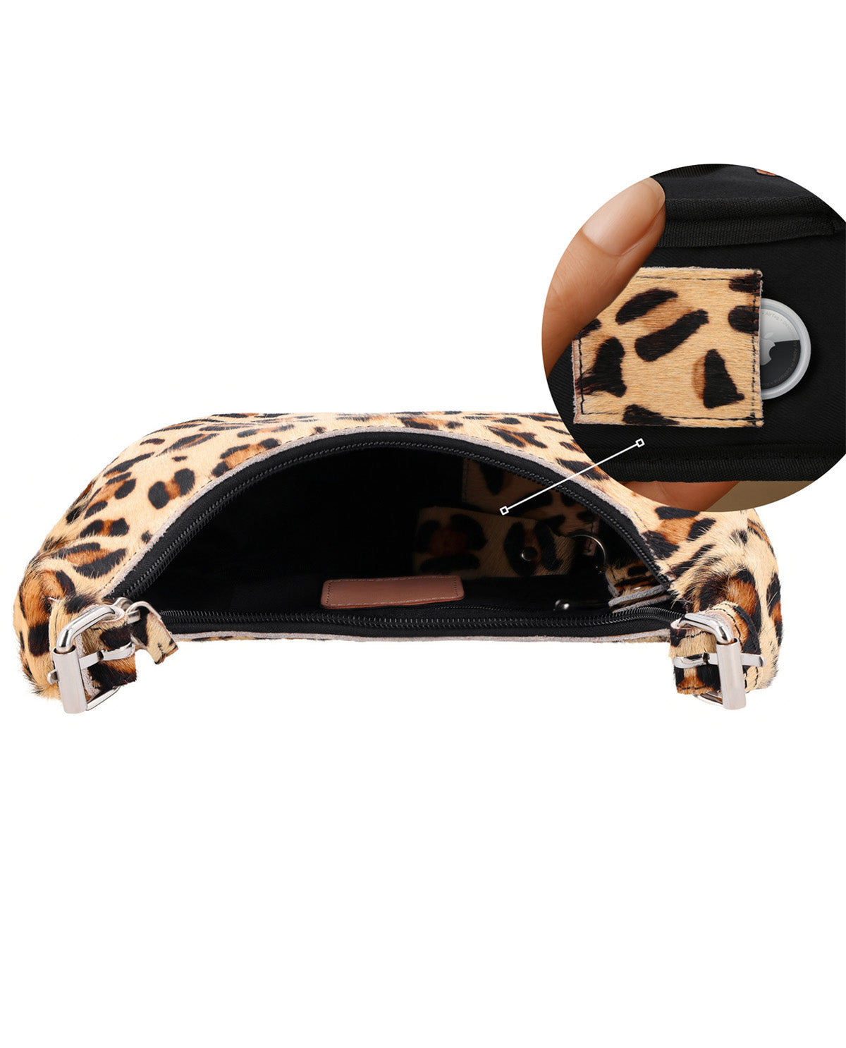 Bolso de mano con compartimento AirTag, llavero y estampado animal