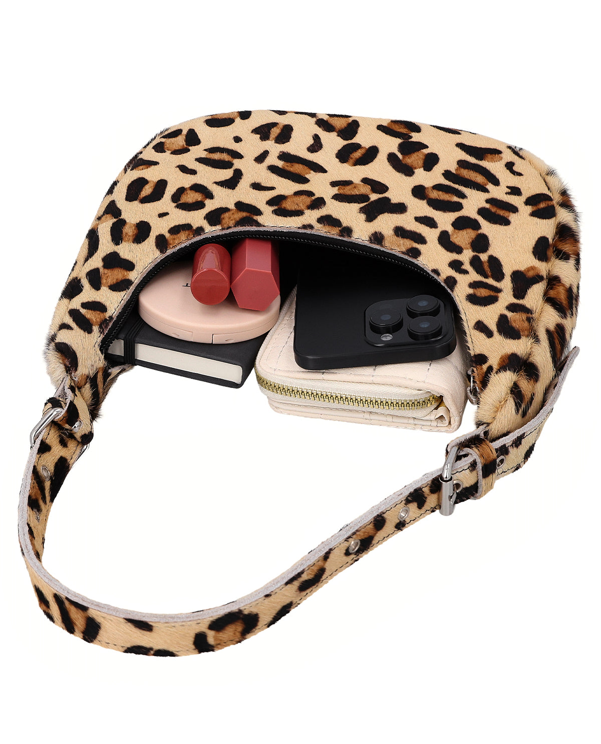 El pequeño bolso «Heike» es un bolso de piel para mujeres que quieren darle un toque especial a tu look. El llamativo estampado de leopardo convierte este bolso de piel en un auténtico reclamo y aporta carácter incluso a los outfits más sencillos. A pesar de su tamaño compacto, «Heike» transmite seguridad y modernidad, lo que lo hace perfecto para esos días en los que solo quieres llevar lo imprescindible, pero sin renunciar al estilo. Este bolso de mano de piel combina atrevimiento en cuanto a moda con practicidad para el día a día y marca una clara declaración de intenciones.