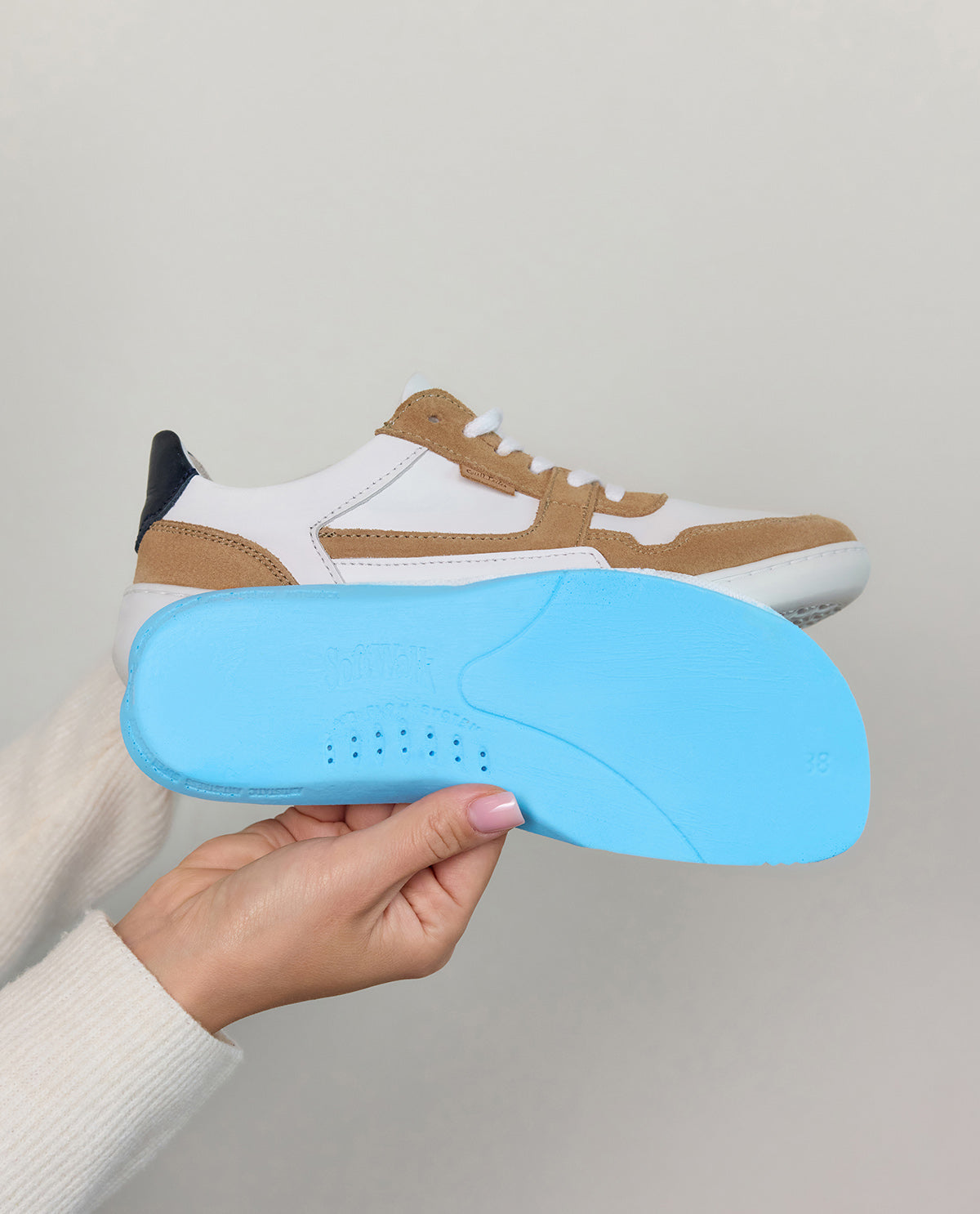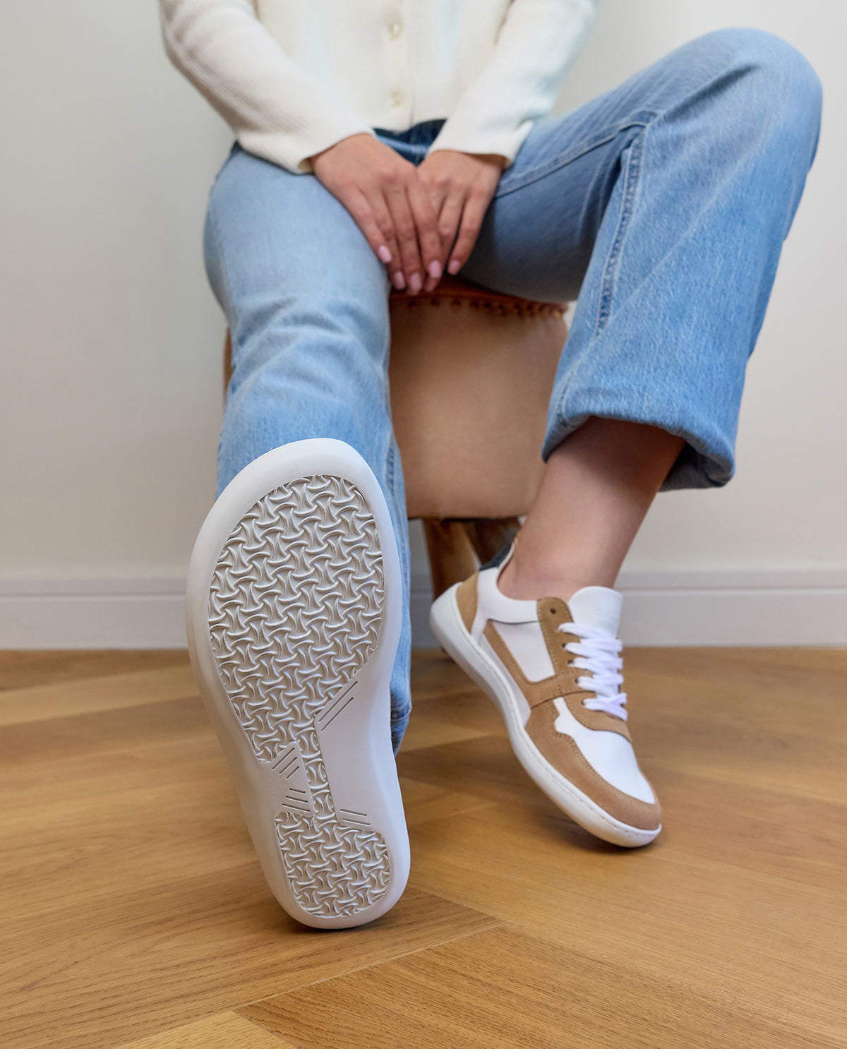 Los zapatos descalzos "Amrei" de cuero te ofrecen una combinación inigualable de ligereza, flexibilidad y diseño elegante. Fabricados con cuero de alta calidad, convencen por su aspecto natural premium y la calidad excepcional del material. El cuero delgado y flexible se adapta óptimamente a tu pie, mientras que el interior transpirable garantiza un clima seco y agradable. Cada paso es suavemente amortiguado, los zapatos protegen tus pies de manera confiable y al mismo tiempo permiten la máxima libertad de movimiento. "Amrei" es el compañero perfecto para todos aquellos que desean combinar comodidad, estilo y naturalidad al caminar.