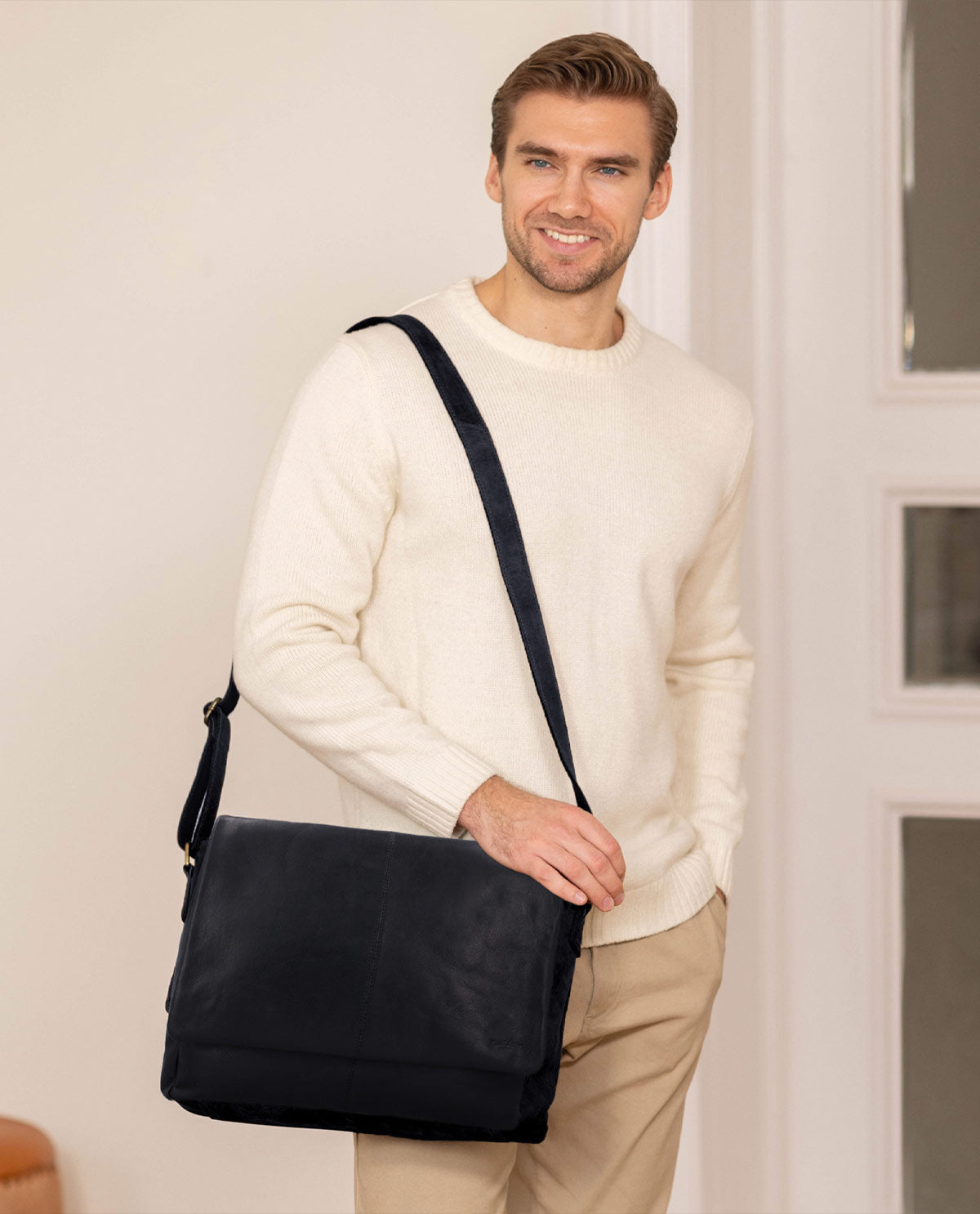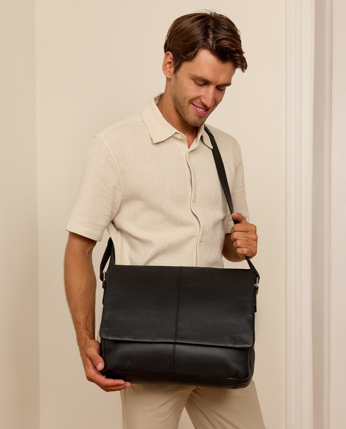 Sencillo, elegante y atemporal: el bolso bandolera "Reign" destaca por su diseño clásico y su cuero negro de alta calidad. Es el compañero perfecto para el día a día, ya sea en la oficina, de viaje o en tu tiempo libre. La combinación de un material resistente y un diseño bien pensado convierte a este bolso de cuero en un accesorio imprescindible para hombres con estilo.