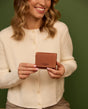 "August" convence por su manejabilidad pero también por el suficiente espacio de almacenamiento. Puede almacenar al menos seis tarjetas. "August" también cuenta con un bolsillo transparente para el DNI o el boleto de viaje mensual. El bolsillo para el cambio está dividido en dos y también hay espacio para tus billetes. El forro interno de rayas completa el diseño. "August" se asegura con una cremallera y un botón a presión. Para que siempre lleves contigo todo lo que necesitas. ¡Una cartera realmente práctica!