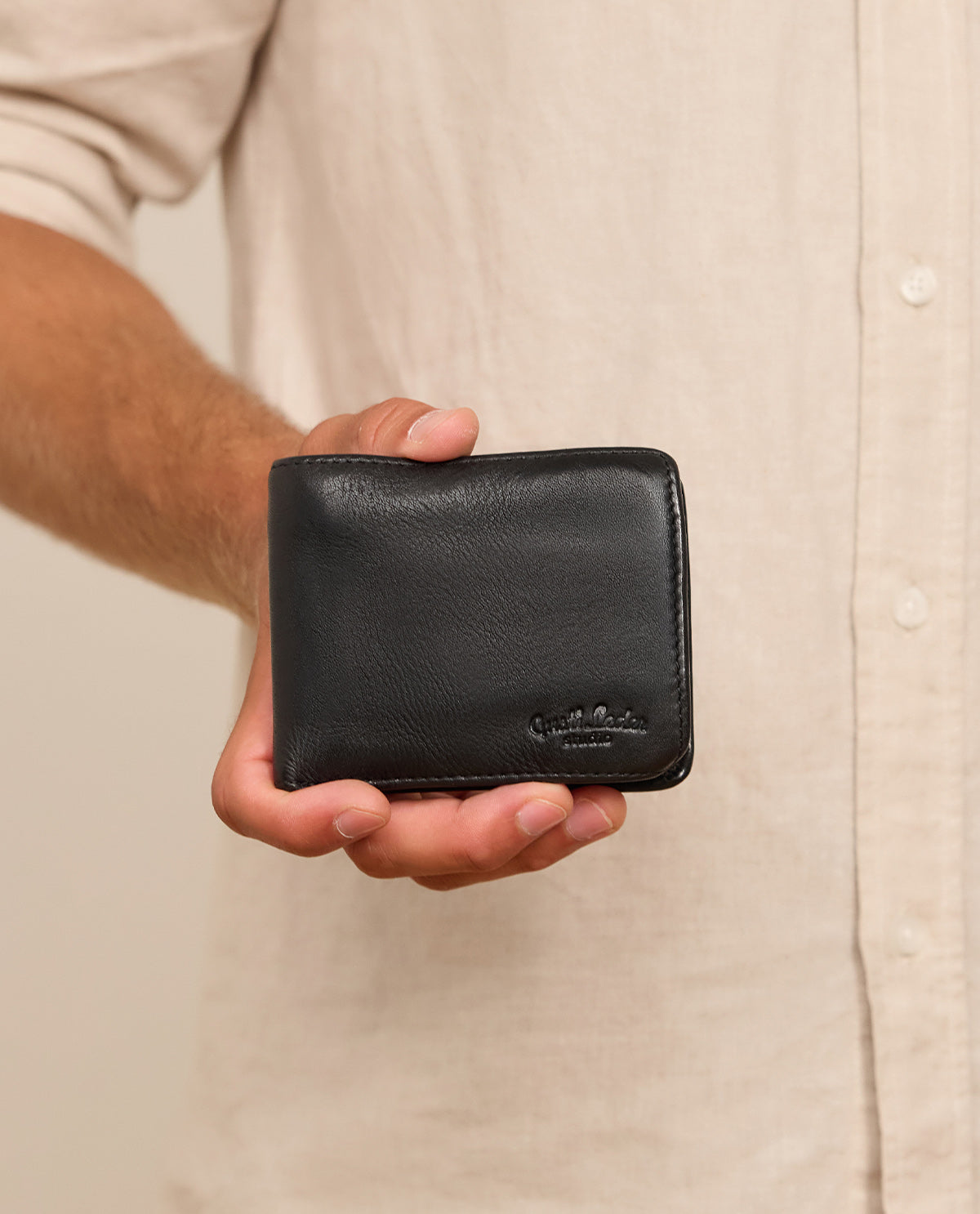 El cuero negra vintage le da a la billetera un aspecto elegante que solo mejora con el tiempo. Fabricado con cuero de alta calidad, este accesorio ofrece durabilidad y estilo en uno solo.