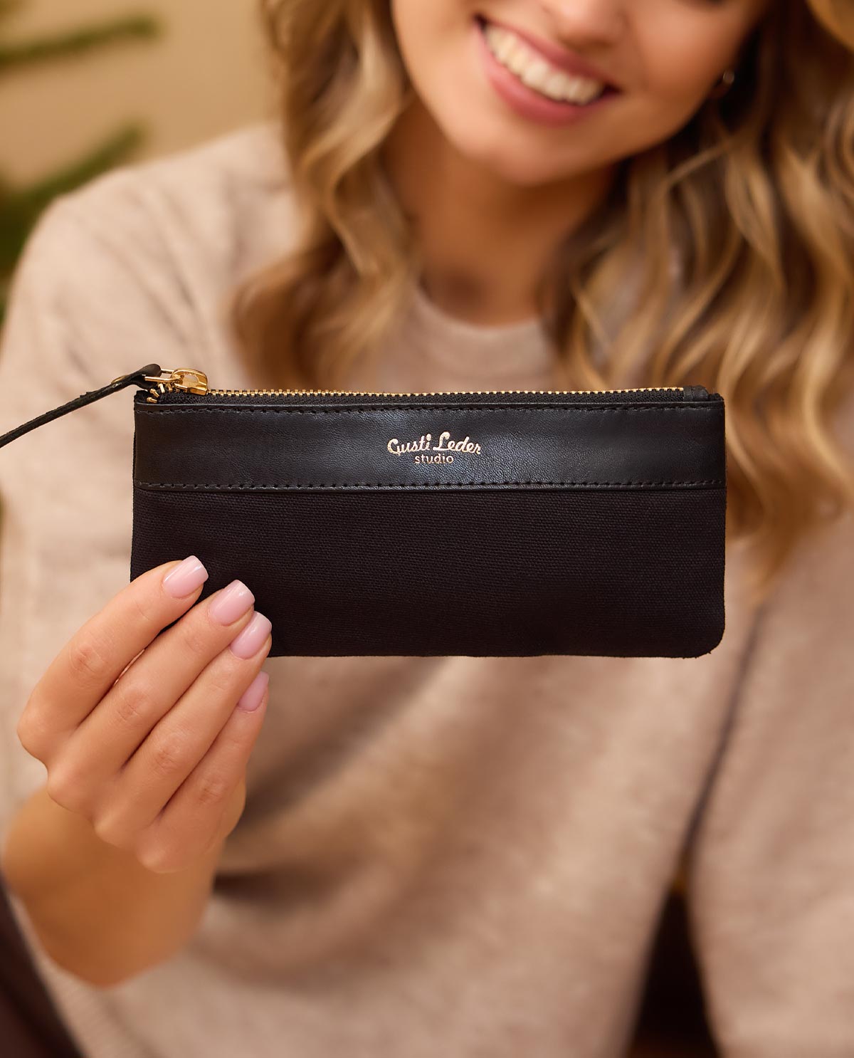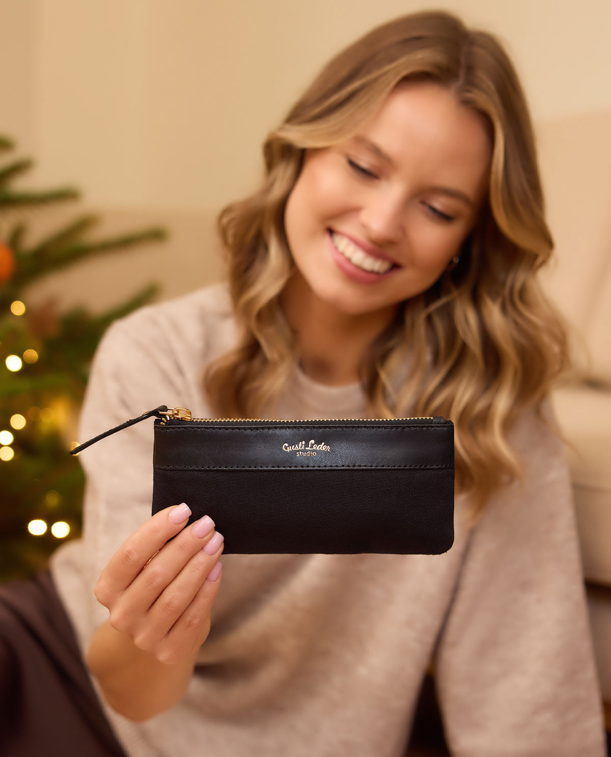 Ya sea para el día a día o para viajar, con „Everly“ siempre llevarás tus esenciales de belleza de forma organizada y con estilo. Este neceser de cuero negro combina elegancia atemporal con funcionalidad práctica, convirtiéndose en el compañero perfecto para cualquier momento.