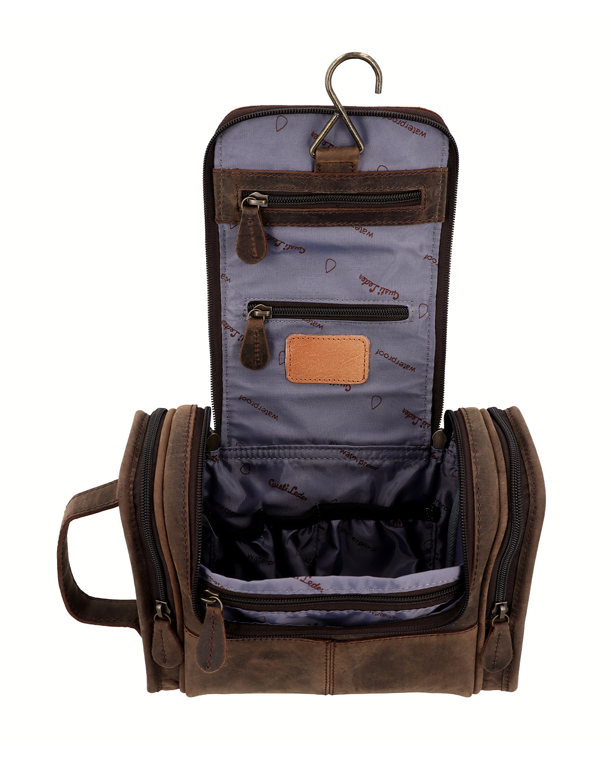 Si fueras un pequeño elfo, podrías jugar al escondite en este neceser. "Chester" tiene un número increíble de opciones de almacenamiento para todos tus artículos de aseo. Además de sus bolsillos versátiles, "Chester" también ofrece la practicidad necesaria cuando hay que guardar todo en ella. Todo está bien guardado en los dos bolsillos laterales. El práctico gancho permite colgar a "Chester" en cualquier baño del mundo. El interior es repelente al agua, por lo que "Chester" perdonará incluso los pequeños derrames de champú. Y como en Gusti Cuero no todo es sólo funcionalidad, nuestro neceser también es extremadamente elegante. Por si fuera poco, puedes elegir entre el elegante marrón y el negro. ¿Qué más se puede pedir? Con este elegante neceser, no tendrás que hacer renunciar a nada cuando viajes y estarás siempre bien equipado.