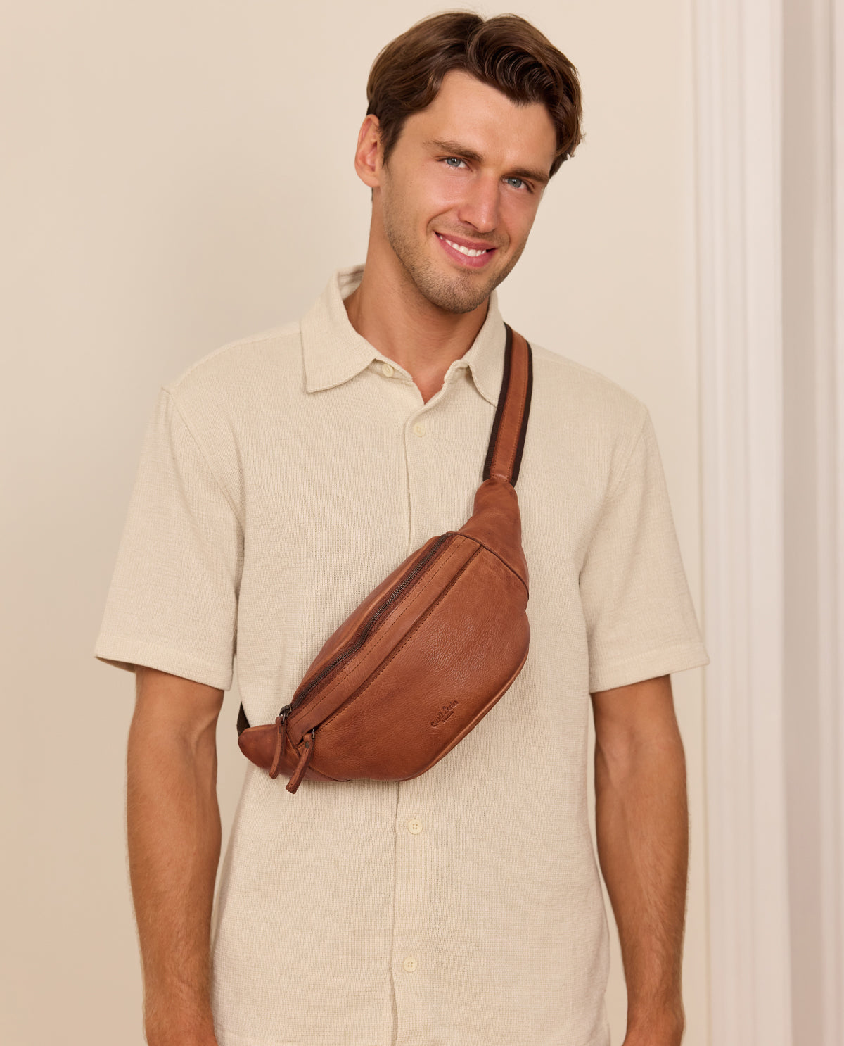 Nuestra riñonera "Spencer" no hace alardes de sí misma, pero convence por su diseño sencillo y desenfadado, su calidad y su funcionalidad. El robusto cuero vacuno de alta calidad confiere a la riñonera la estabilidad dimensional necesaria, mientras que sus numerosos compartimentos con cremallera ofrecen espacio suficiente para tus objetos esenciales, sin los cuales simplemente estarías perdido en todos los festivales o simplemente en el ajetreo nocturno de la ciudad. Los amantes de los festivales y los apasionados de los conciertos sabrán apreciar las cualidades de "Spencer". En su interior caben fácilmente la cartera, el smartphone y las llaves, y mucho más. El cinturón ajustable de esta riñonera de piel también está equipado con un resistente cierre a presión para que puedas llevar "Spencer" tanto alrededor de la cintura como cruzada. Fiel al lema: "Spencer" no tiene complicaciones. "Spencer" es práctico. "Spencer" es simplemente genial.