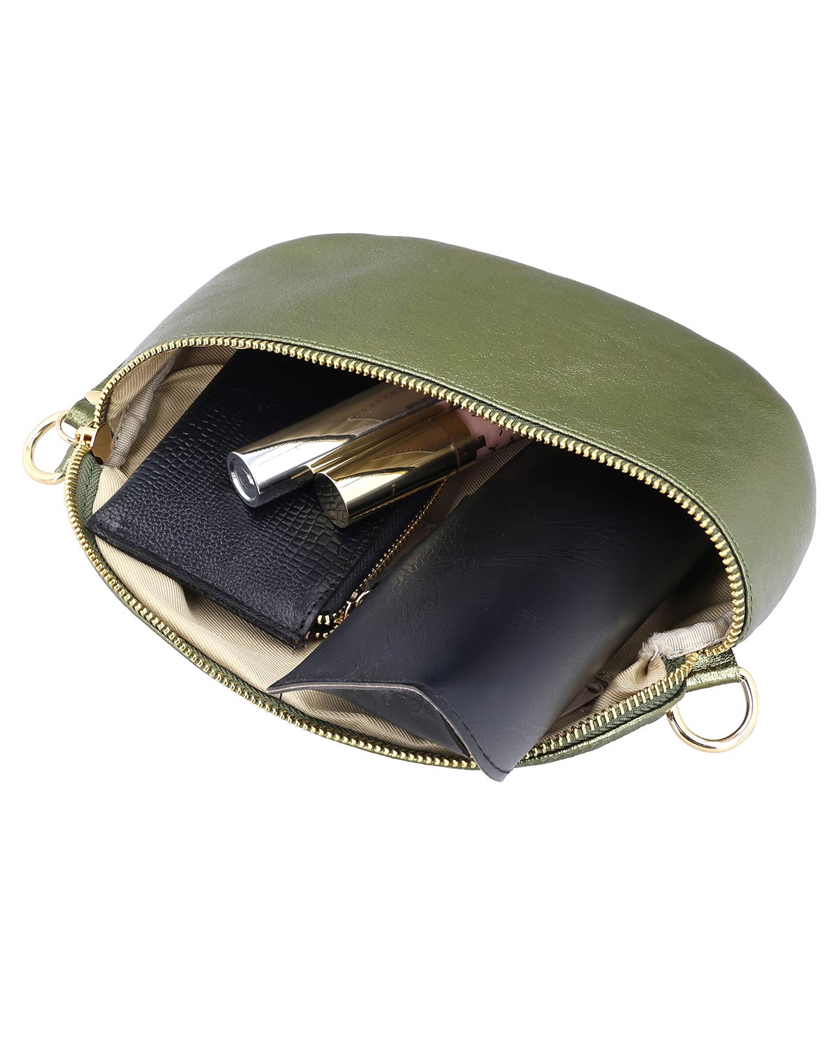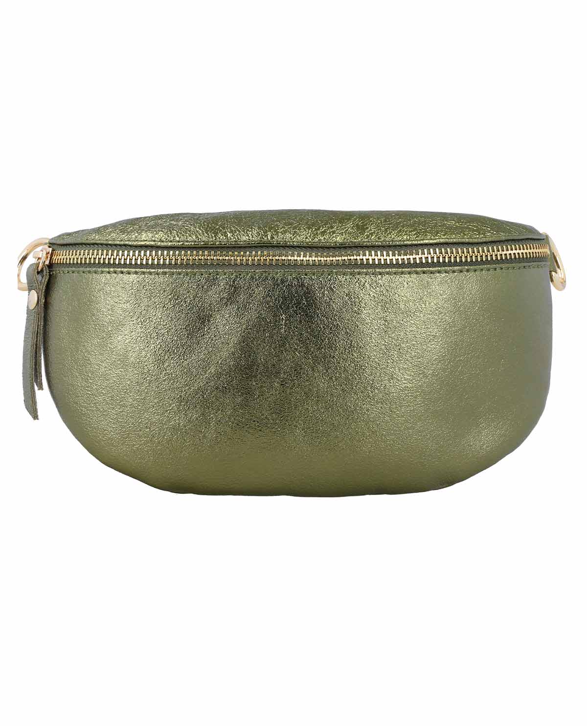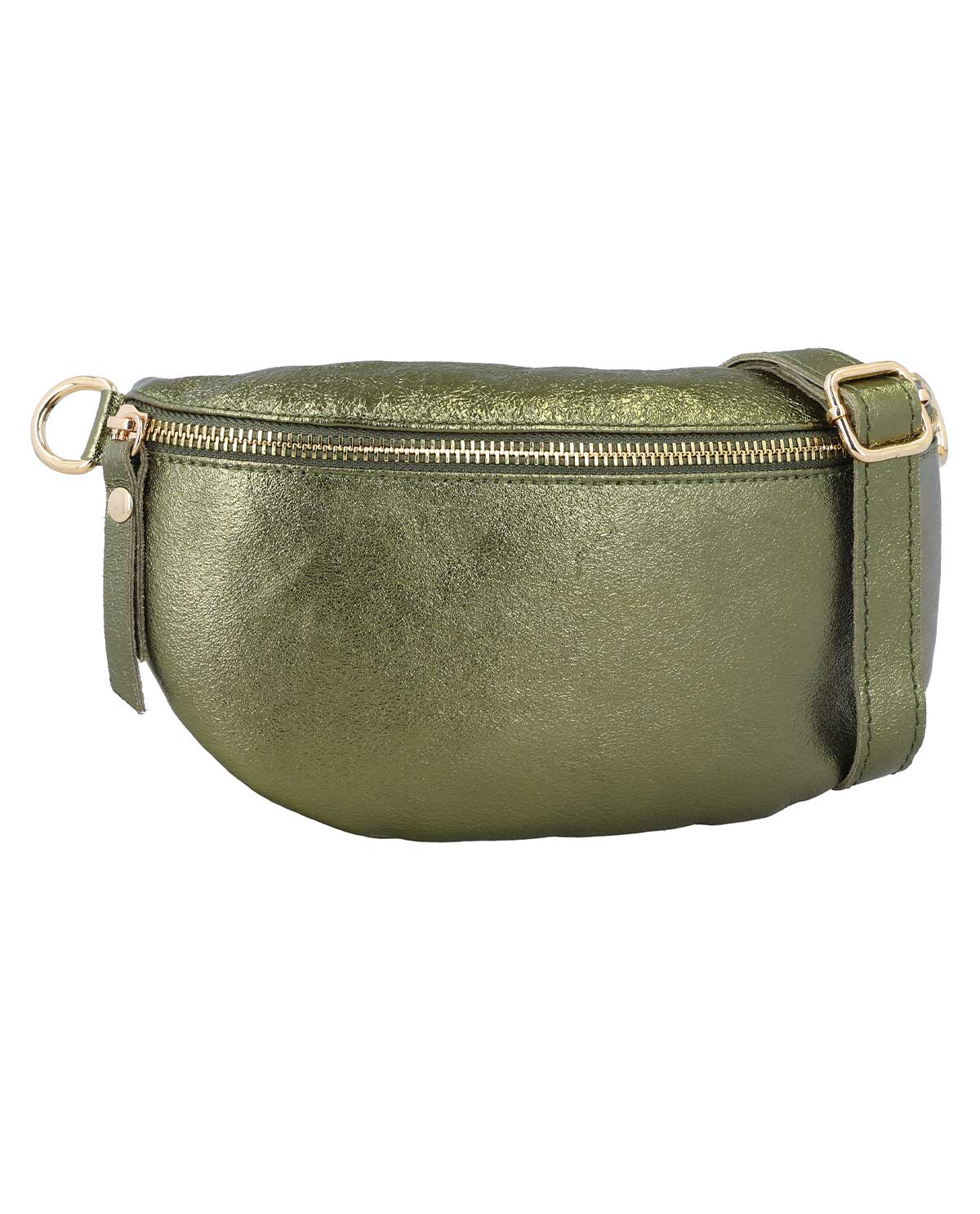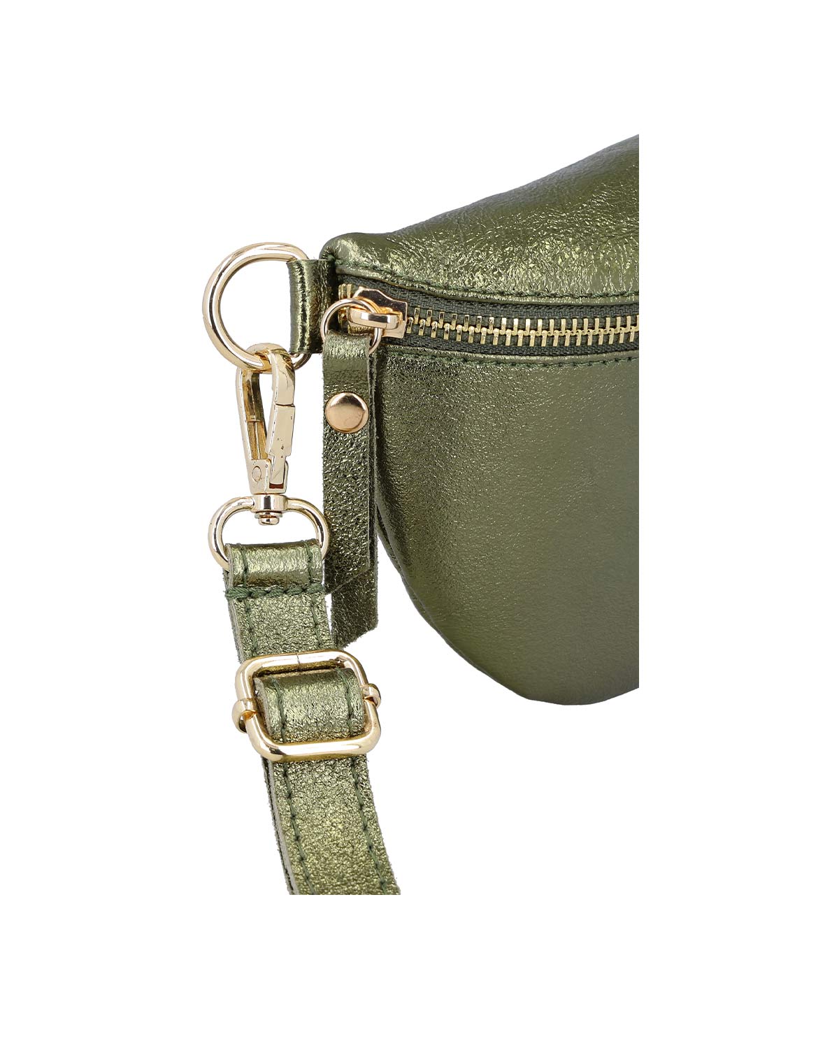Riñonera Bolsa de cintura bolso bandolera mujer verde charol cuero - Made in Italy