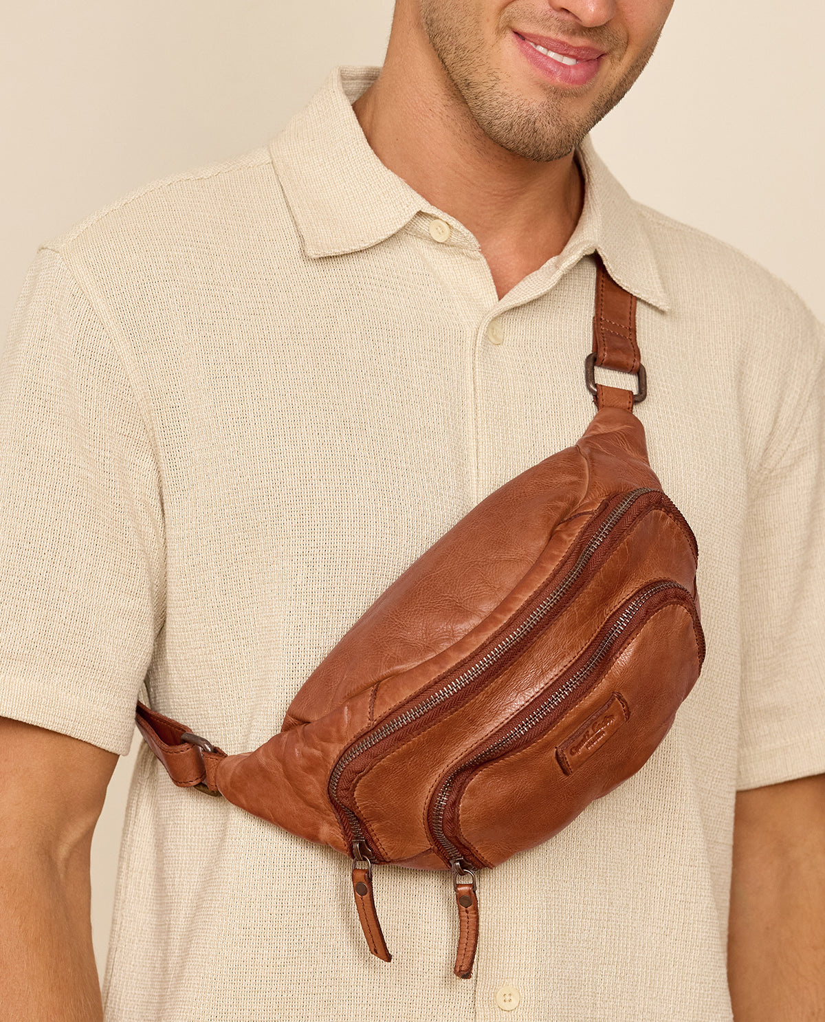 ¿Buscas una riñonera de piel chula para la próxima temporada de festivales, una forma práctica de guardar los snacks en las pistas o simplemente una pequeña bolsa para guardar tus cosas? Entonces "Sverre" es sin duda la elección correcta para ti. El fresco aspecto vintage hace que esta riñonera de robusto cuero vacuno sea algo especial, para que siempre vayas con estilo. Puedes guardar tus pertenencias sin problemas en el amplio compartimento principal. En la parte delantera también encontrarás dos bolsillos más pequeños que también puedes cerrar con cremallera. ¡El Coachella puede empezar! Pero también en invierno destaca su elegancia en los conciertos y lleva sin esfuerzo la cartera, las llaves y el smartphone por ti. Para que puedas bailar y disfrutar de la música sin pensarlo dos veces y tus pertenencias siempre estén a salvo.