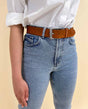 Cinturón de cuero liso con hebilla plateada accesorios mujer cuero marrón