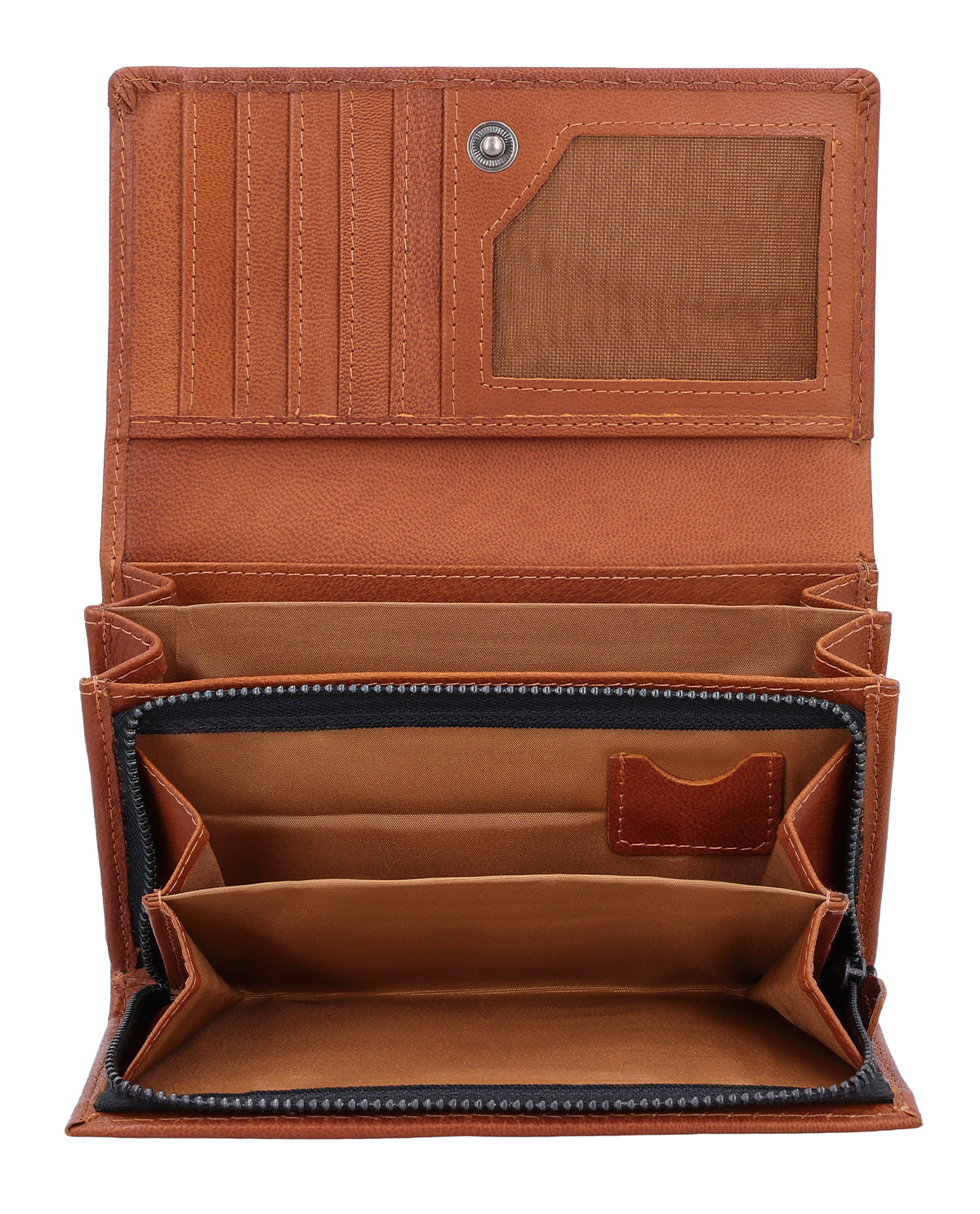 Mit unserem Portemonnaie "Gemma" hast du alles dabei: Karten, Scheine, Kleingeld und Fahrkarten finden ihren angestammten Platz. Die beiden Kleingeldfächer kannst du mit einem Reißverschluss verschließen. Zusätzlich gibt es ein extra Münzfach für eine einzelne Münze – ideal, wenn du mal schnell eine passende Münze griffbereit haben möchtest. In "Gemma" findest du Platz für mindestenst fünf Karten, außerdem bieten wir dir noch einen Kartensteckplatz mit transparentem Sichtfenster für deinen z.B. deinen Ausweis. Deine Geldscheine sind in zwei separaten Fächern gut untergebracht. Dank integriertem RFID-Schutz sind deine Karten zudem zuverlässig vor ungewolltem Auslesen geschützt. Das restliche Portemonnaie wird durch einen Druckknopf zusammengehalten. So kommst du schnell an dein Geld, es ist aber trotzdem vor dem Hinausfallen geschützt. Die Geldbörse besteht aus robustem Rindsleder und ist so ein wahrer Alltagsheld: perfekt für Vieleinkäufer und die, die es noch werden wollen!