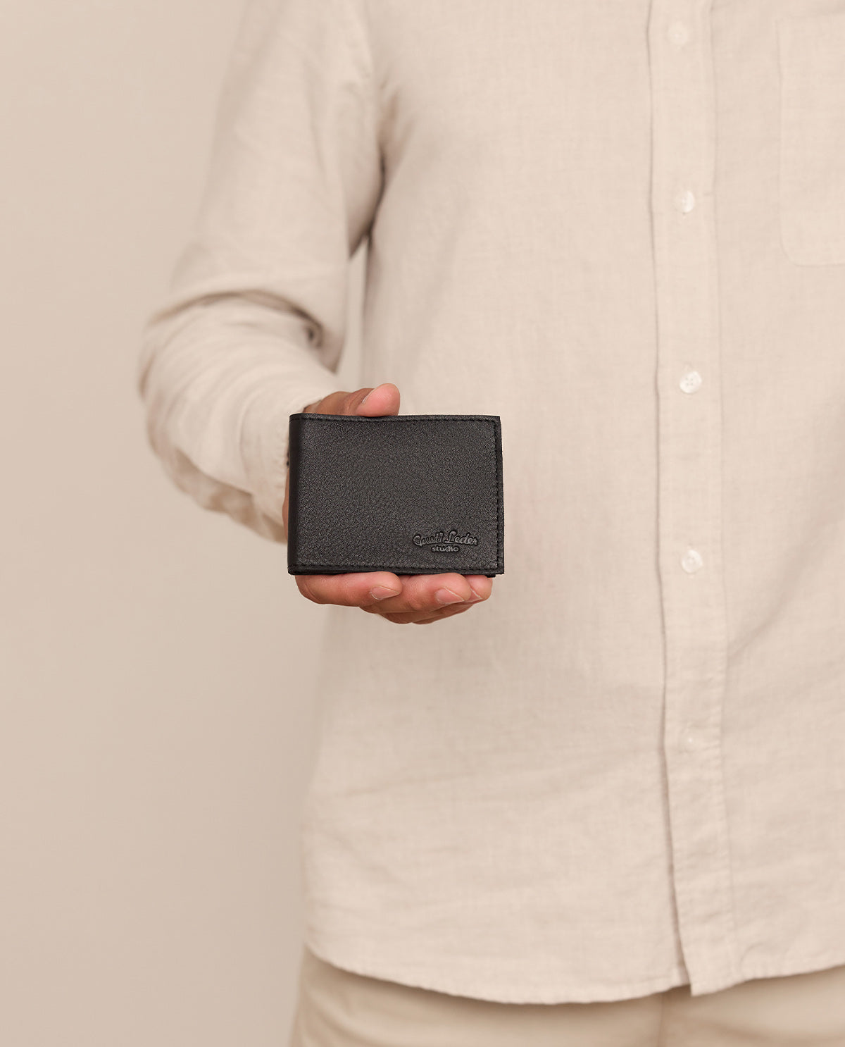 Aus robusten und widerstandsfähigem Ziegenleder verfügt „Danny“ im Innenraum über ein großes Hauptfach, diverse Einsteckfächer und ein Münzfach mit Druckknopf. So passen bequem Geldscheine, deine wichtigste Karte und sogar noch Haustürschlüssel rein. Schnell noch in die Tasche gepackt es kann losgehen – mit „Danny“!