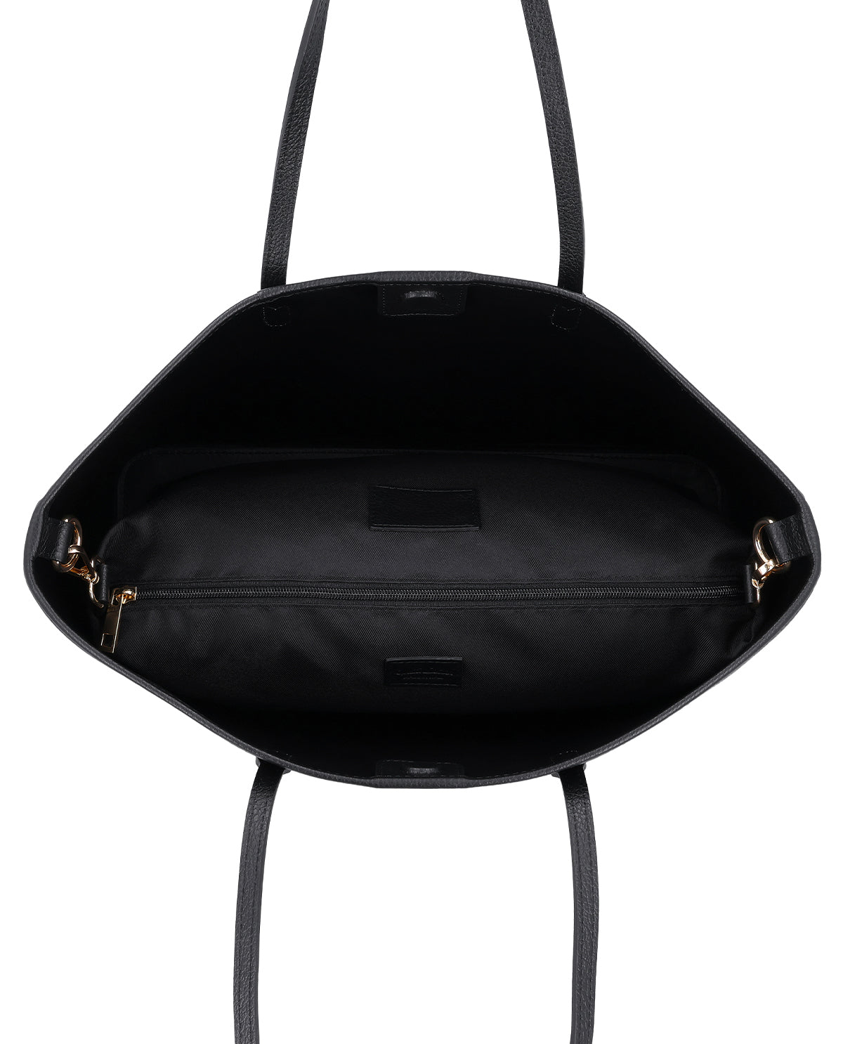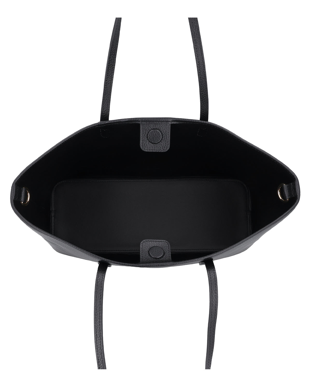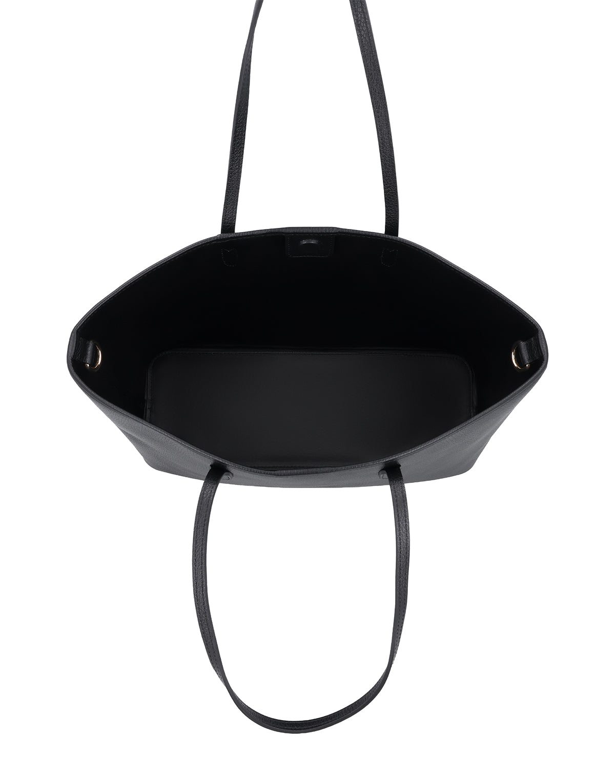 Die große Handtasche „Tilde“ ist eine schwarze Lederhandtasche für Damen, die durch ihre klare Silhouette und funktionale Details überzeugt. Besonderes Highlight ist die herausnehmbare Innentasche mit Reißverschluss, die Dir zusätzliche Struktur bietet und sich bei Bedarf separat nutzen lässt. Der Magnetverschluss sorgt für ein unkompliziertes Öffnen und sicheres Schließen im Alltag. Made in Italy, verbindet „Tilde“ hochwertige Verarbeitung mit zeitloser Eleganz.