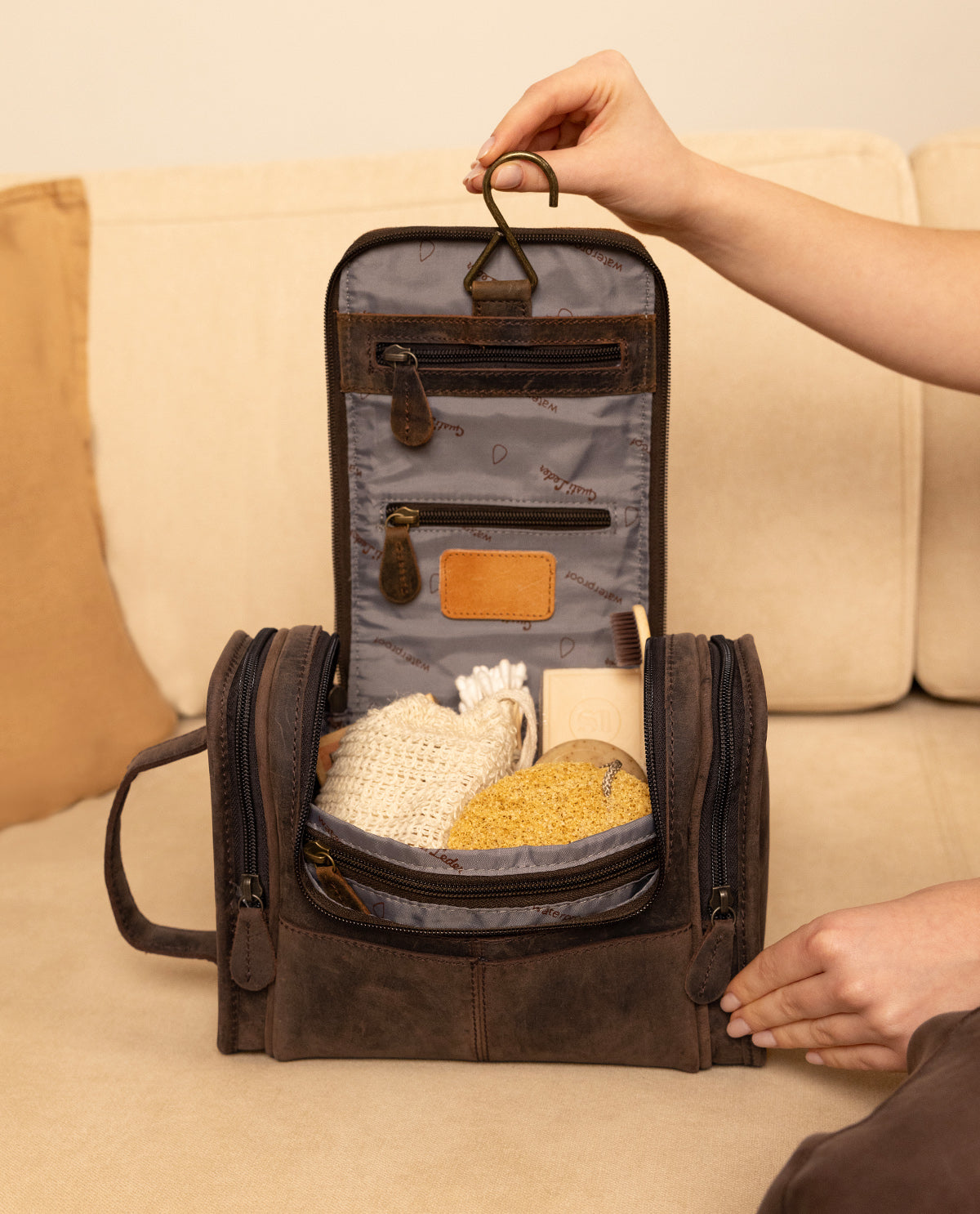 Kulturbeutel mit Haken zum Aufhängen