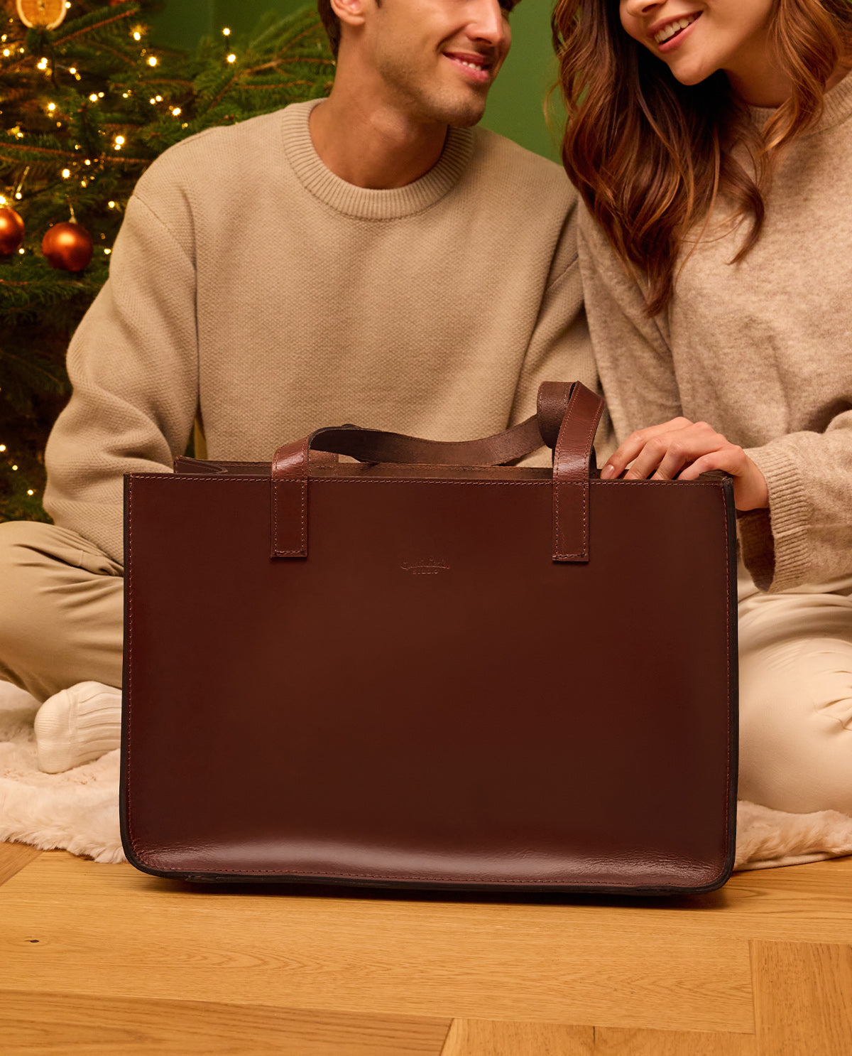 Das extragroße Innenfach von Agatha hat genug Raum für dein 15 Zoll Notebook, deine Trinkflasche, Geldbörse, Notizbücher, Schlüssel und Stifteetui. Zudem bietet die große Öffnung genügend Stauraum für einen spontanen Einkauf. Die Tragehenkel aus echtem Leder runden das Design ab, während die Möglichkeit, Agatha mit einer Widmung zu versehen, sie zu einem besonders persönlichen Geschenk macht. Diese Tasche wird nicht nur deinem Alltag gerecht, sondern unterstützt auch eine Branche, die sich für Umweltschutz und faire Arbeitspraktiken einsetzt. Ein Must-Have für alle, die Funktionalität und Stil vereinen möchten.