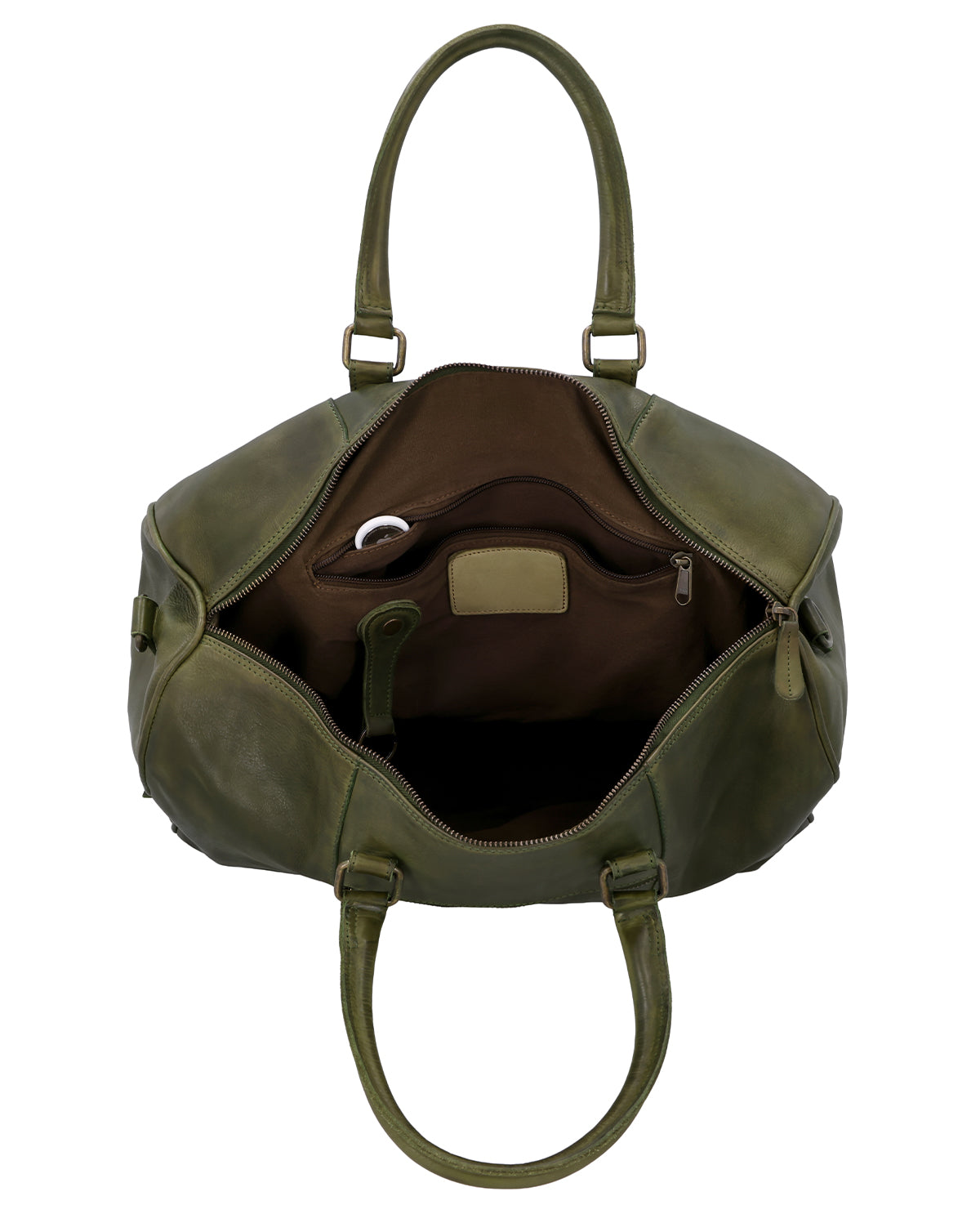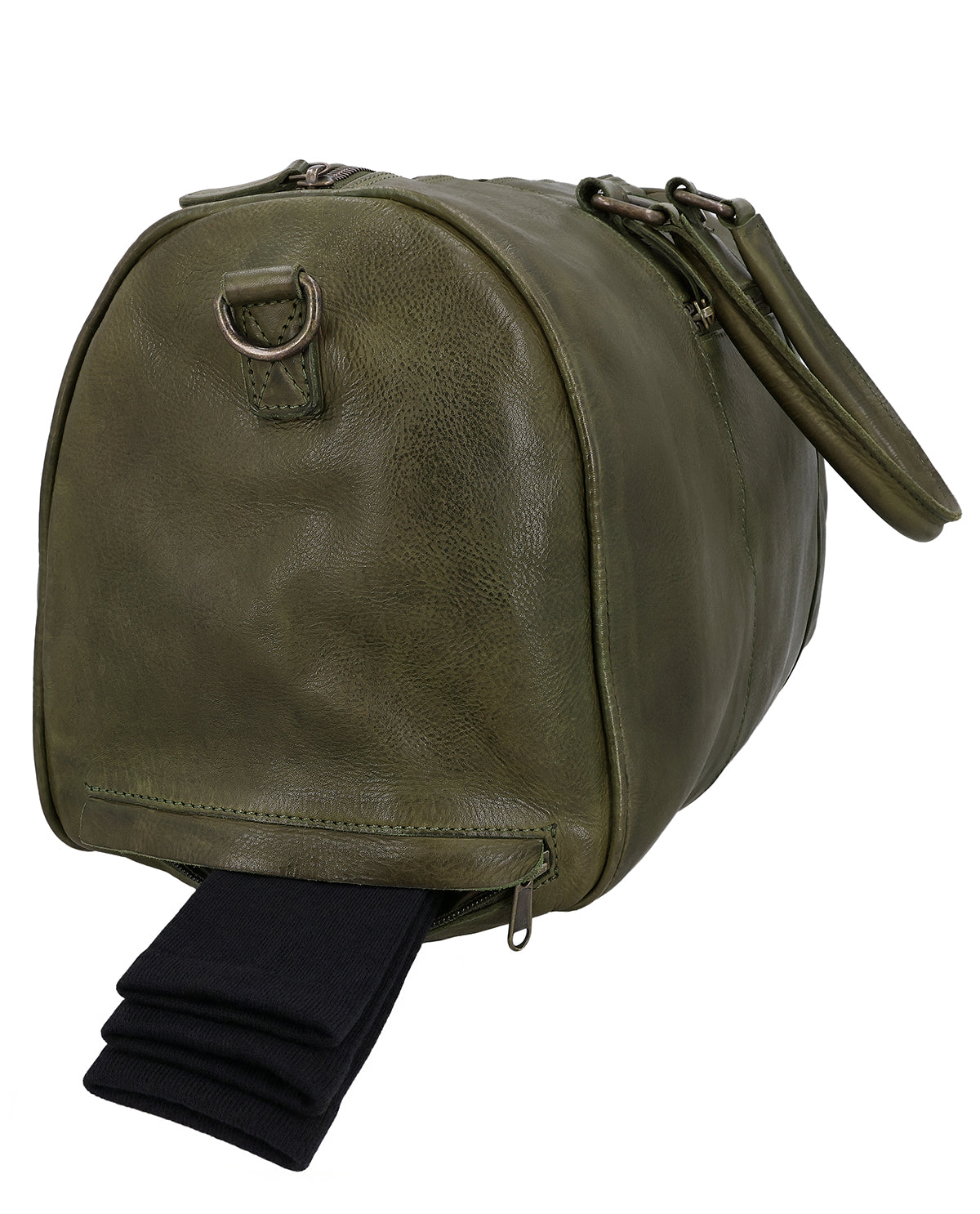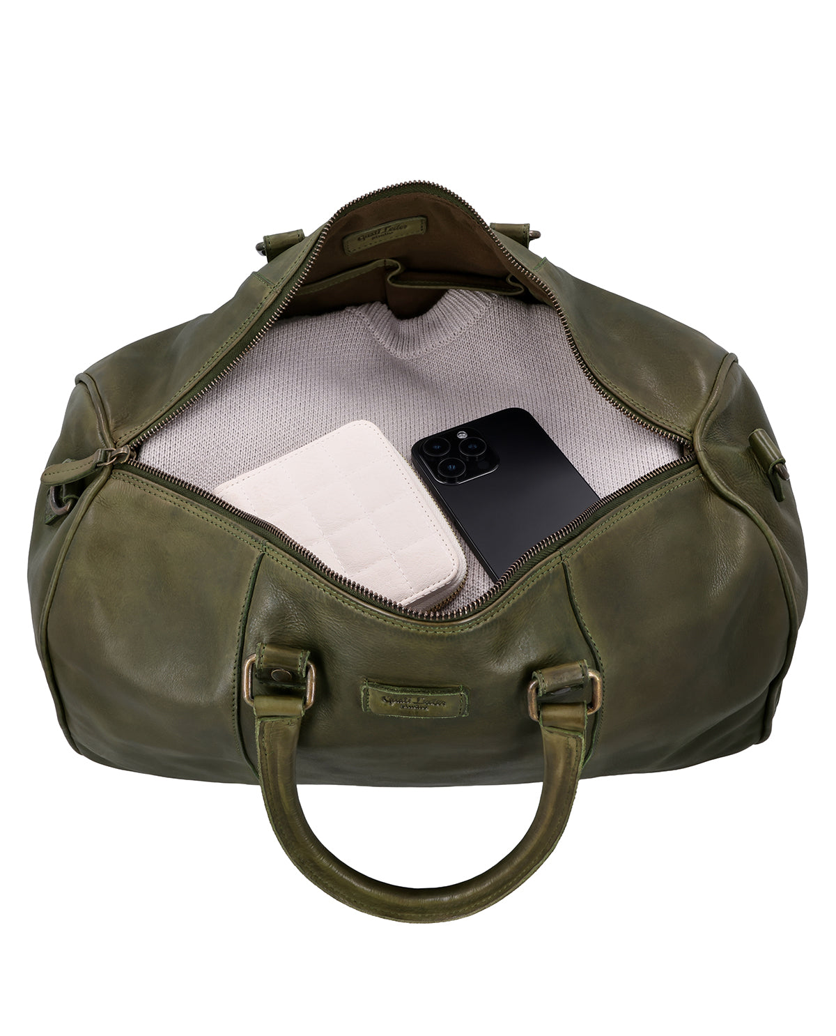 Die Reisetasche „Joris“ aus grünem Leder ist für Damen und Herren gemacht, die unterwegs den Überblick behalten möchten. Als hochwertige Lederreisetasche verbindet sie klassisches Design mit smarten Extras, die auf Reisen wirklich zählen. Ein verstecktes AirTag-Fach sorgt für zusätzliche Sicherheit, während ein herausnehmbarer Schlüsselanhänger Deine wichtigsten Dinge sofort griffbereit hält. Besonders praktisch ist das separate Nassfach mit wasserabweisendem Futter – ideal getragene Kleidung die getrennt verstaut werden soll. „Joris“ ist eine Ledertasche, die Ordnung schafft und Dir unterwegs spürbar Arbeit abnimmt.