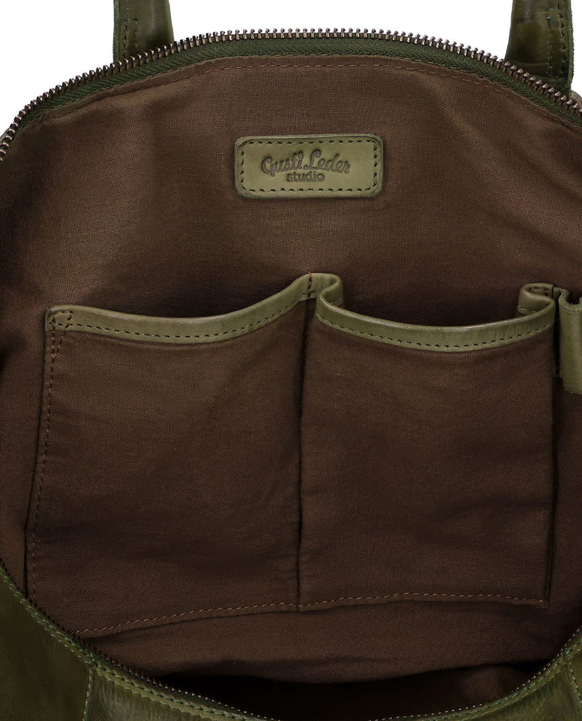 Innen und außen bietet „Joris“ mehrere Reißverschlussfächer, ergänzt durch Steckfächer und Stiftehalter für strukturierte Organisation. Der lange Schultergurt ist verstell- und abnehmbar, zusätzlich sorgt ein abnehmbares Schulterpolster für angenehmen Tragekomfort auf längeren Strecken. Ein stabiler Metallreißverschluss schließt die Tasche sicher, während ein Gravur-Patch Raum für Personalisierung bietet. Das Gusti-Logo innen und außen rundet die Lederreisetasche stimmig ab. „Joris“ ist die ideale Wahl für alle, die Funktion, Komfort und langlebiges Leder in einer Reisetasche vereint suchen.