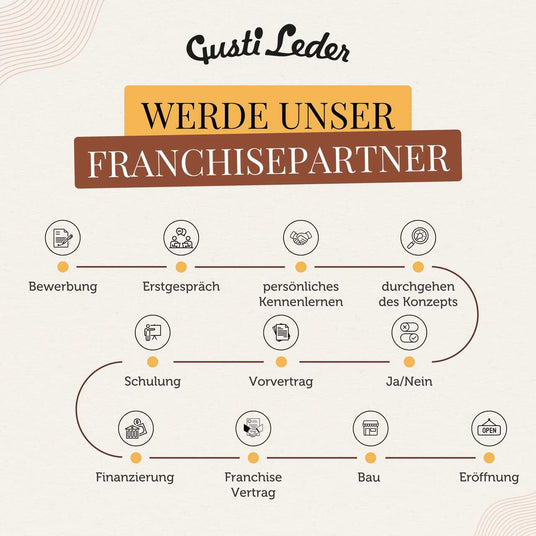 Werde Franchisenehmer und profitiere von einem bewährten Geschäftsmodell, umfassender Unterstützung, geringem Risiko und schnellen Einstiegsmöglichkeiten in einen etablierten Markt. Hochwertige Lederwaren und eine transparente Produktion sind unsere größten Stärken, die uns zur ersten Wahl für unsere Kunden und Kundinnen machen.