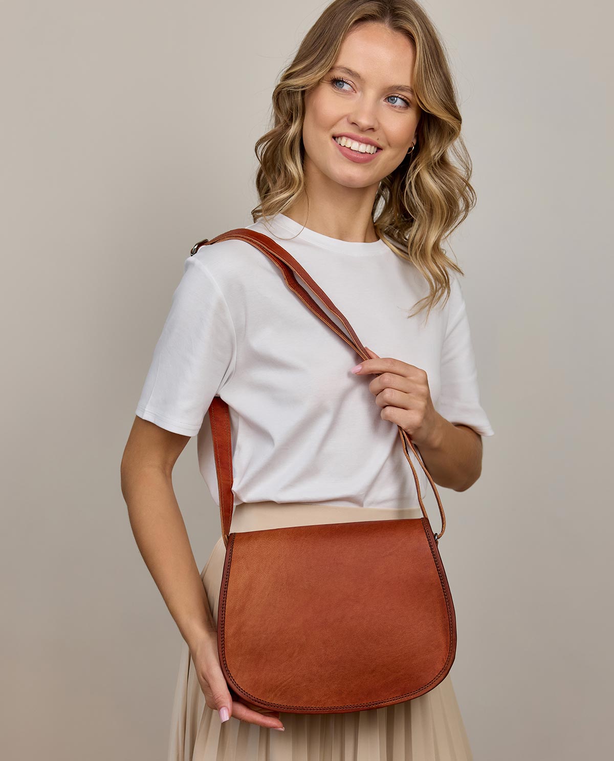 Dank der durchdachten Fächerstruktur im Inneren der Tasche - inklusive zweier praktischer Reißverschlussfächer - bietet "Holly" Dir genügend Platz für Deine Essentials wie Dein Smartphone und Portemonnaie, Schlüsselbund, das Bullet Journal usw. - eben für alles, was Du brauchst. Der durch den großzügigen Überschlag verdeckte Magnetverschluss von "Holly" kombiniert mit dem unvergleichlichen Farbspiel des geschmeidigen und widerstandsfähigen vegetabil gegerbten Ziegenleders, das für diese Handtasche hochwertig verarbeitet wurde, machen sie zu einer einzigartigen Tasche von unaufgeregter Schönheit, während der längenverstellbare Riemen für den nötigen Tragekomfort sorgt.