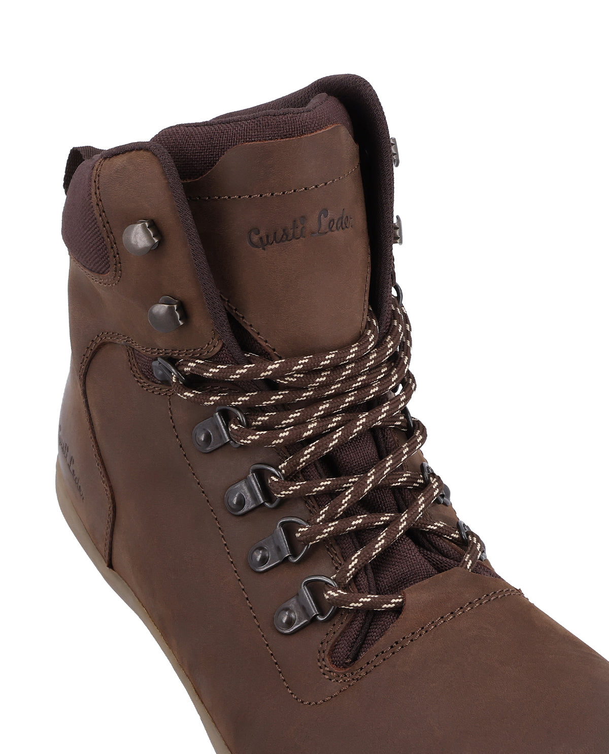 Auch funktional überzeugen die Schuhe „Dolf“ mit durchdachten Details. Die hochwertige Lederinnensohle sorgt für ein angenehmes Fußklima und unterstützt Deinen Tragekomfort spürbar. Für sicheren Halt auf unterschiedlichen Untergründen ist die robuste schwarze Gummisohle verantwortlich, die Stabilität und Langlebigkeit vereint. Besonders praktisch ist zudem die stabile Schnürung mit Metallösen, die Dir einen sicheren Sitz und eine präzise Anpassung an Deinen Fuß ermöglicht. So genießt Du bei jedem Schritt ein ausgewogenes Gefühl aus Sicherheit, Bequemlichkeit und natürlicher Bewegungsfreiheit. Diese Lederboots sind ideal für Dich, wenn Du Wert auf Qualität, Komfort und einen souveränen Auftritt legst.