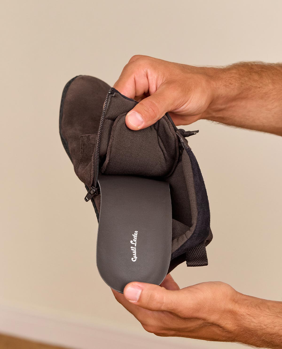 Im Inneren sorgt die Innensohle durch die spezielle Verabeitungsweise des Strobel-Materials für ein angenehm stabiles, zugleich flexibles Laufgefühl. Die Außensohle aus TPR unterstützt Dich mit zuverlässigem Grip und leichter Beweglichkeit auf verschiedenen Untergründen. Das weiche Innenmaterial aus Schafleder liegt angenehm am Fuß an und rundet den Komfort spürbar ab. Die praktische Fersenschlaufe erleichtert Dir das Hineinschlüpfen und sorgt gemeinsam mit der stabilen Konstruktion für optimalen Halt im Alltag. Mit ihrer harmonischen Mischung aus Eleganz und Funktionalität sind die "Qemal" Boots der ideale Begleiter, wenn Du auf langlebige Qualität und stilvolle Alltagstauglichkeit setzt.