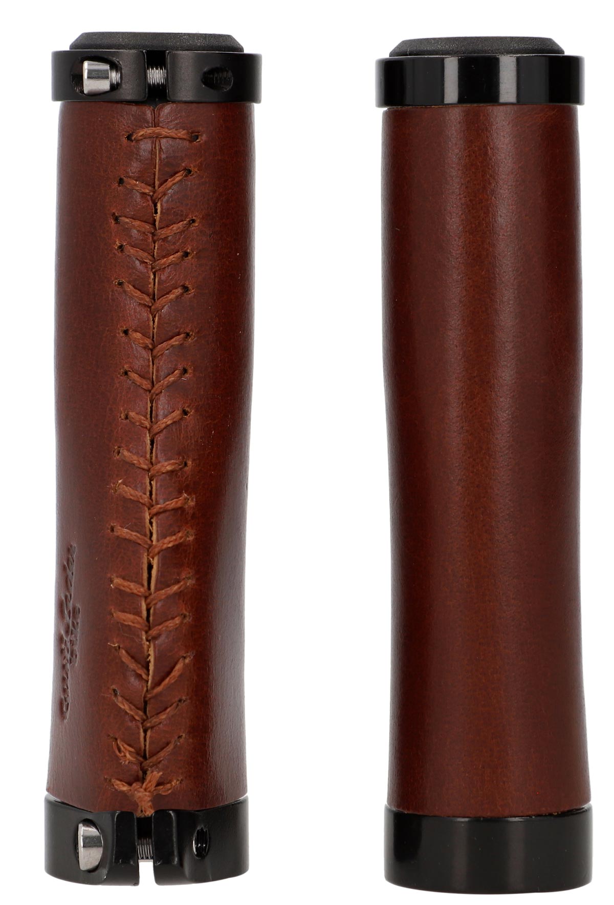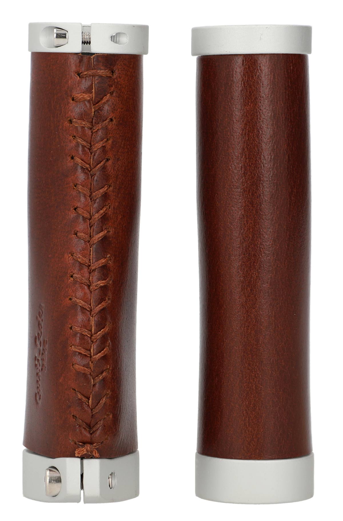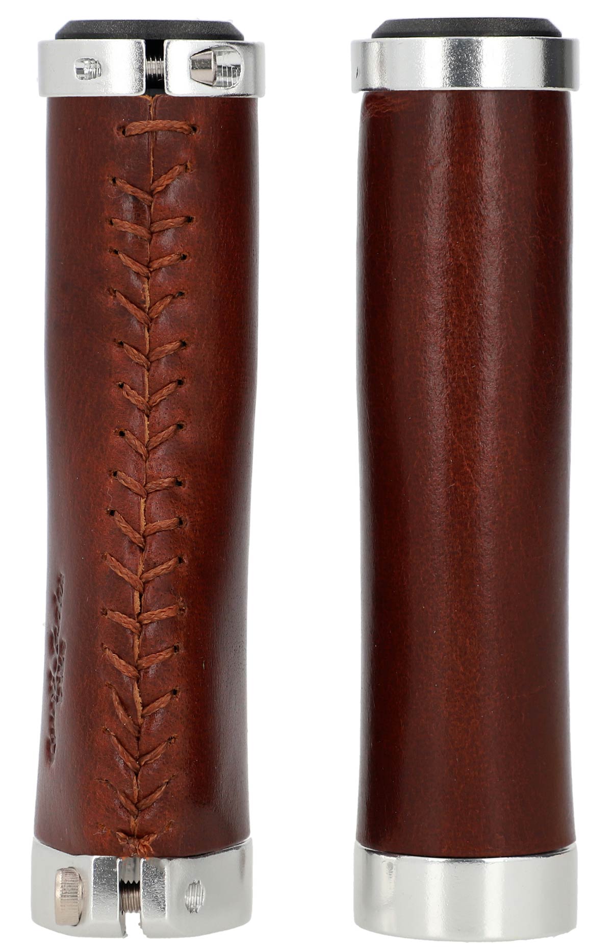 Die ledernen Lenkergriffe "Phil A." passen optisch ebenso hervorragend zu einem trendigen Single-Speed-Rad wie zum klassischen Holland-Bike und lassen sich kinderleicht montieren. Ihr hochwertiges Materialmix aus farbigem Aluminium und 100% Echtleder sorgt für hervorragenden Grip und ein konstant gutes Lenkverhalten. Gleichzeitig passen sie sich ideal der Anatomie Deiner Hände an, federn Stöße und Vibrationen ab und erhöhen so die Griffsicherheit. Nach einer kurzen Einfahrzeit wirst Du den spürbaren Komfort und die angenehme Haptik dieser Griffe nicht mehr missen wollen.