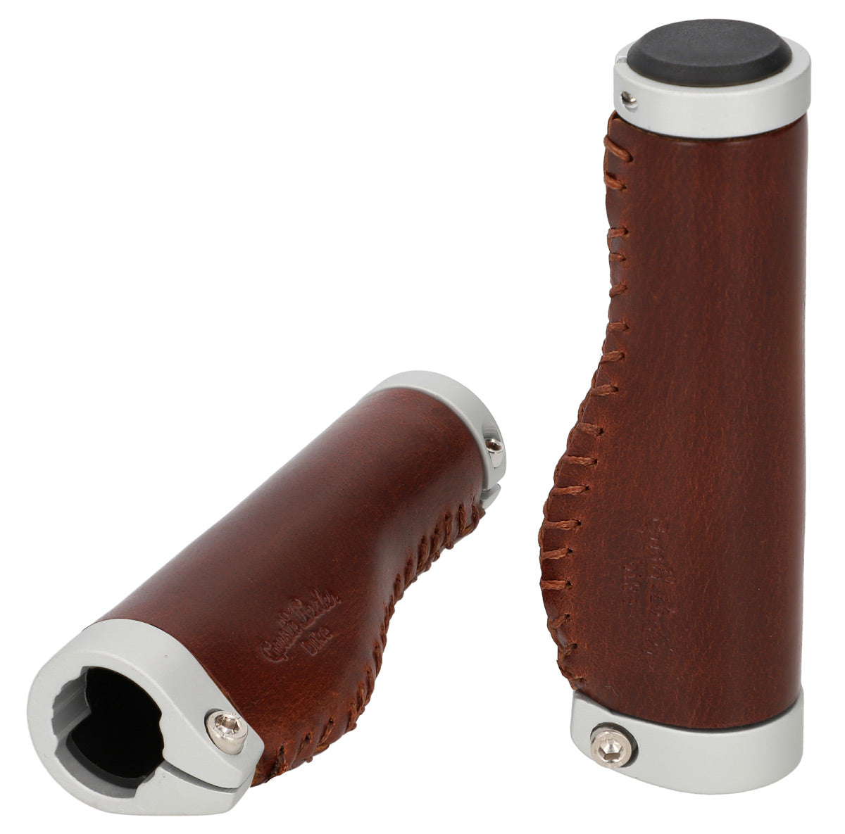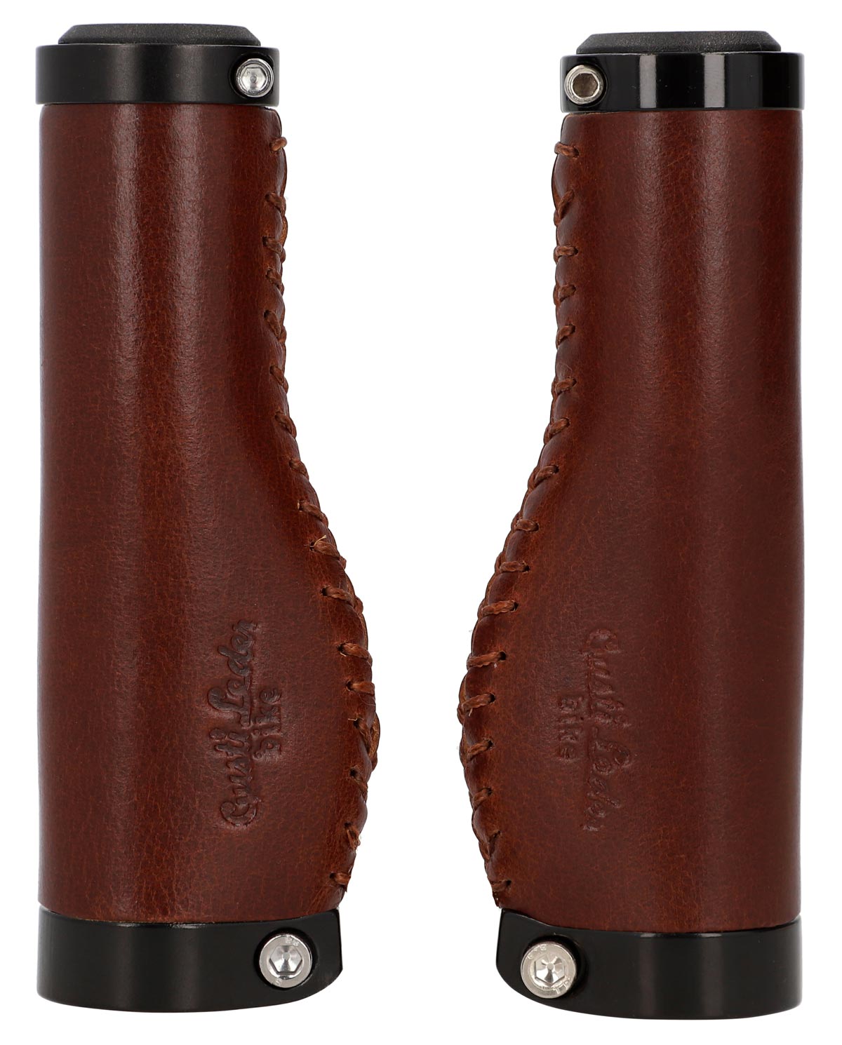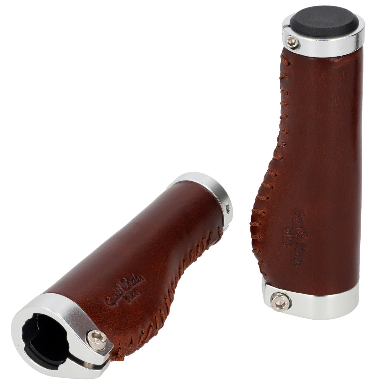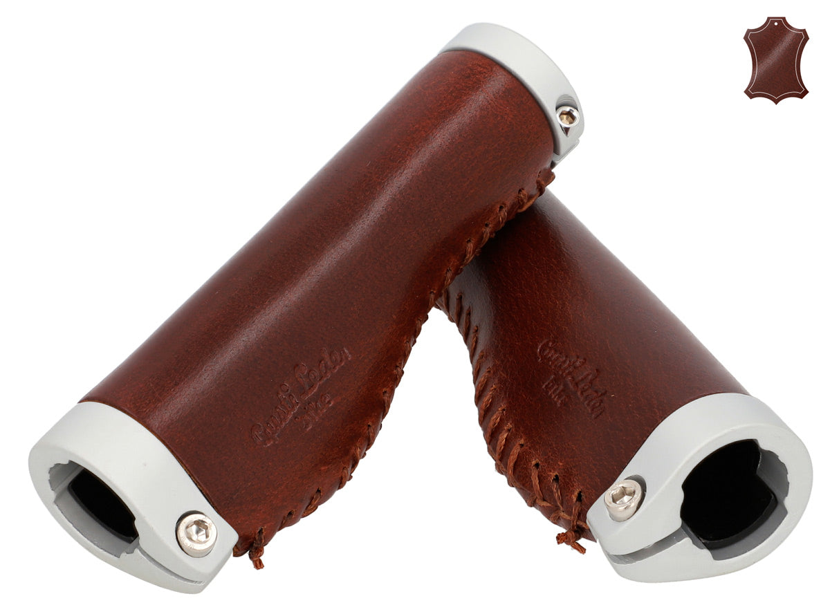 Die ledernen Lenkergriffe "Phil A." passen optisch ebenso hervorragend zu einem trendigen Single-Speed-Rad wie zum klassischen Holland-Bike und lassen sich kinderleicht montieren. Ihr hochwertiges Materialmix aus farbigem Aluminium und 100% Echtleder sorgt für hervorragenden Grip und ein konstant gutes Lenkverhalten. Gleichzeitig passen sie sich ideal der Anatomie Deiner Hände an, federn Stöße und Vibrationen ab und erhöhen so die Griffsicherheit. Nach einer kurzen Einfahrzeit wirst Du den spürbaren Komfort und die angenehme Haptik dieser Griffe nicht mehr missen wollen.