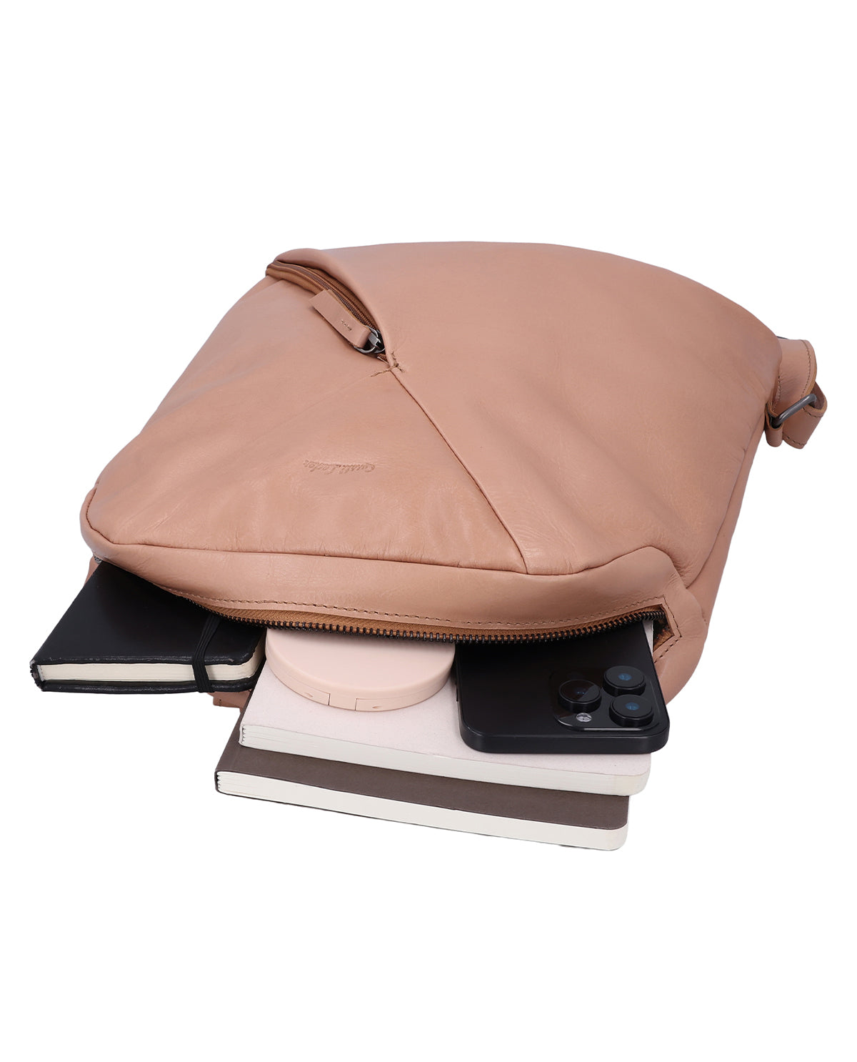 Der große Rucksack „Sanna“ ist ein beiger Lederrucksack für Damen, der Dich zuverlässig durch volle Tage begleitet – ob im Alltag, unterwegs in der Stadt oder auf dem Weg zur Uni. Für ein gutes Gefühl sorgt das versteckte AirTag-Fach, während der abnehmbare Schlüsselanhänger Deine wichtigsten Essentials dort hält, wo Du sie sofort findest. Das Hauptfach mit Reißverschluss schließt sicher und macht „Sanna“ zu einem Begleiter, der Ordnung und Leichtigkeit in Deinen Tag bringt.