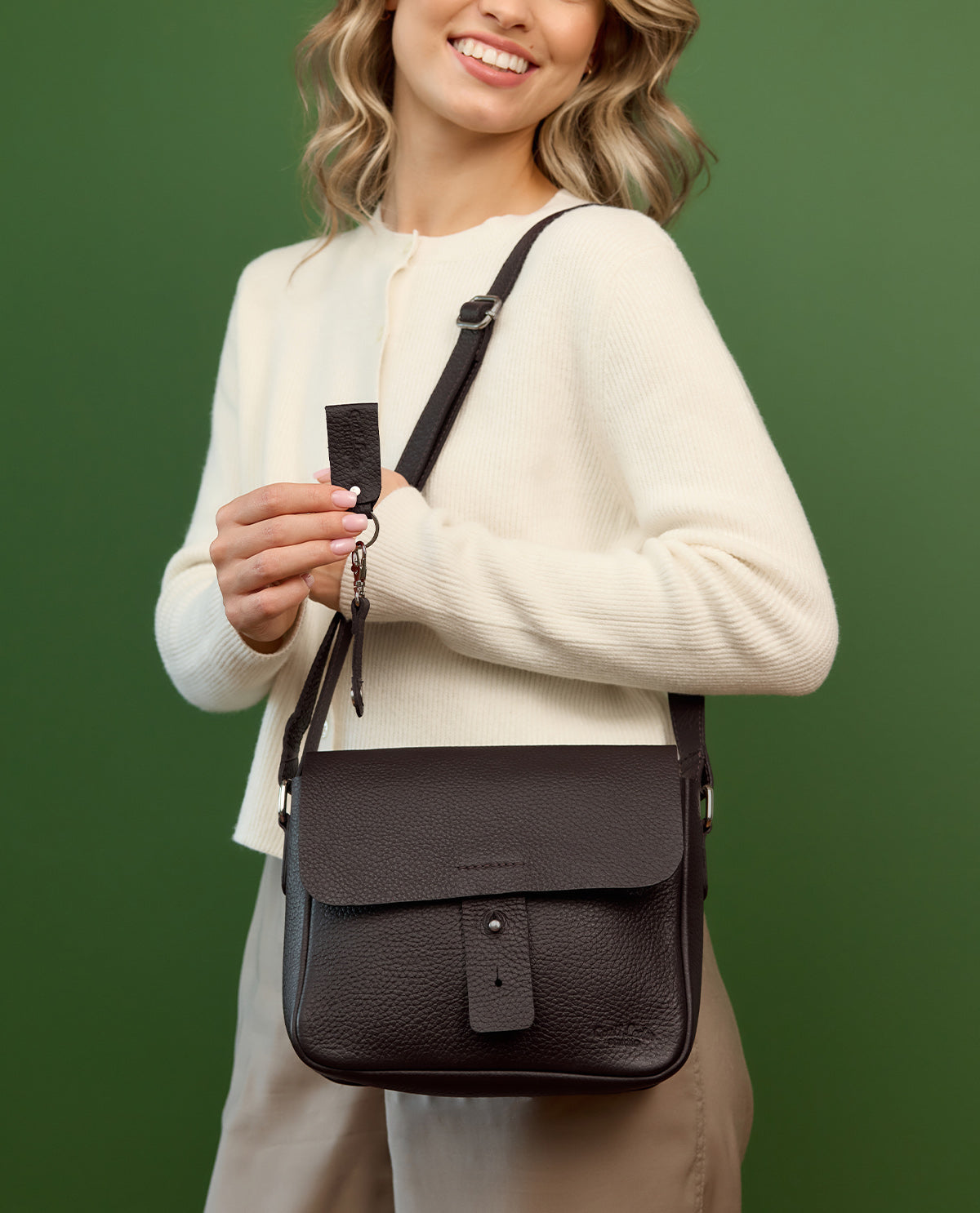 "Bonny" ist die perfekte Begleiterin für Deinen Alltag – kompakt, stilvoll und angenehm leicht. Ihr hochwertiges Leder verleiht der Tasche eine elegante Struktur, während das einfache Easy-Closing-System mit Druckknopf dafür sorgt, dass Du Deine wichtigsten Dinge schnell und sicher verstauen kannst. Ob beim Stadtbummel, auf dem Weg zur Arbeit oder beim Treffen mit Freunden – "Bonny" fügt sich mühelos in Deinen Look ein und bleibt dabei stets zuverlässig und charmant.