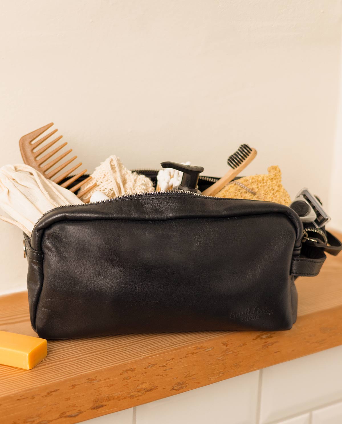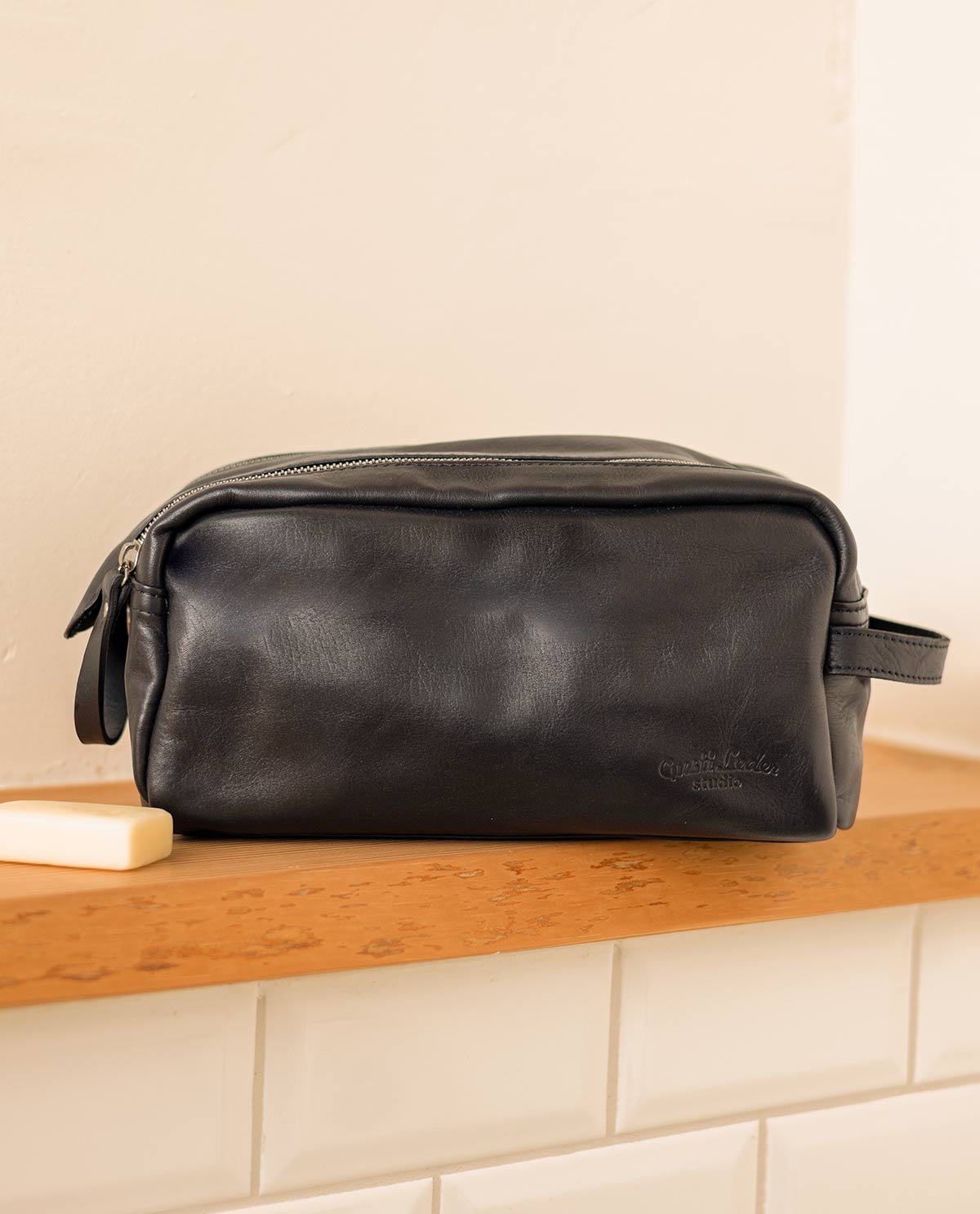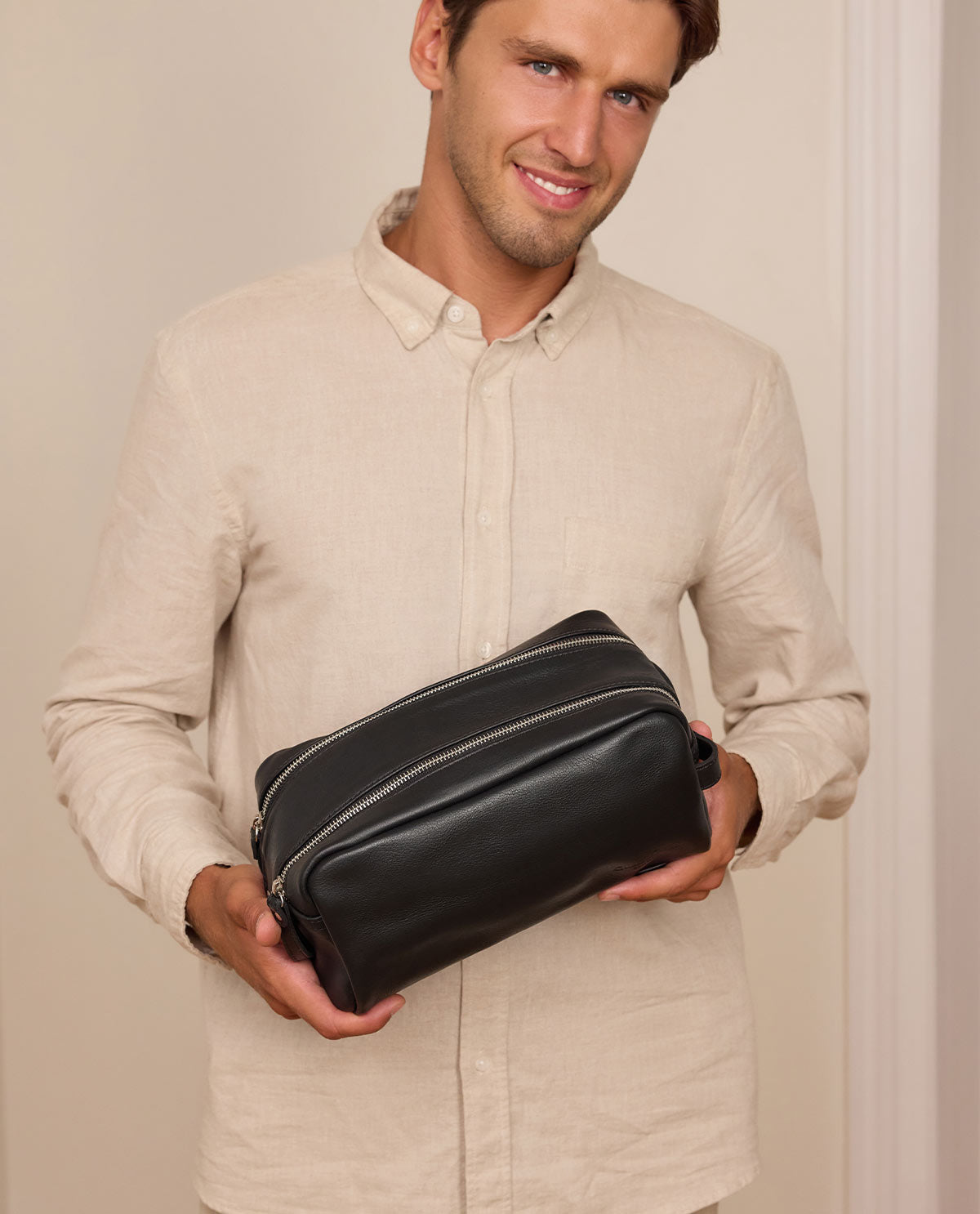 Aus hochwertig verarbeitetem und strapazierfähigem Rindsleder ist "Finja" der perfekte Ort, um deine Hygieneartikel für die Reise sicher und kompakt zu verstauen. Im Inneren ist für Deo, Shampoo, Conditioner, Zahncreme und -bürste und noch viel mehr Platz. Das Hauptfach bietet genügend Platz und durch das wasserfeste Polycotton sind kleine Unfälle mit Shampoo-Flaschen kein Problem mehr. Abgerundet wird dies mit passendem Doppelreißverschluss. Dieser ist auch praktischerweise als Henkel verwendbar. So bleibt alles beisammen und ist optimal verstaut.