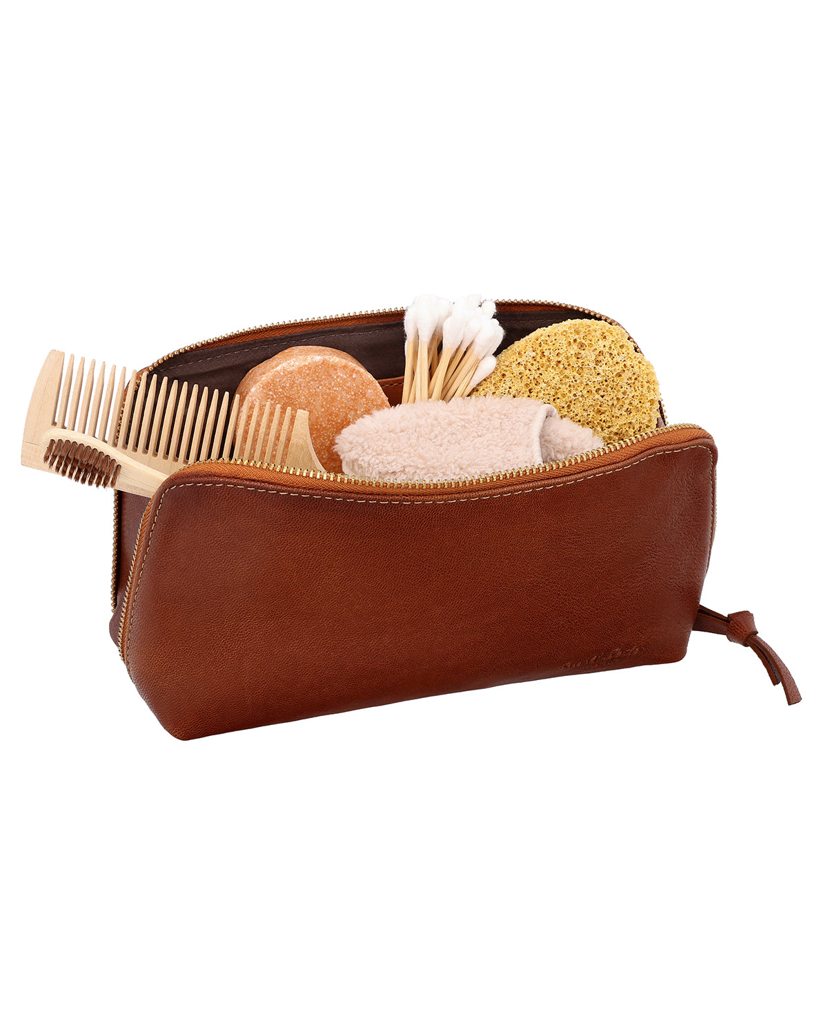 Aus hochwertig verarbeitetem und strapazierfähigem Leder bietet "Eli" den perfekte Raum für all Deine Hygieneartikel. Das geräumige Hauptfach im Inneren bietet genügend Platz für Deo, Shampoo, Conditioner, Zahncreme und -bürste uvm. Abgerundet wird das Design von "Eli" mit einem passendem Reißverschluss. So bleibt alles beisammen und ist optimal verstaut.