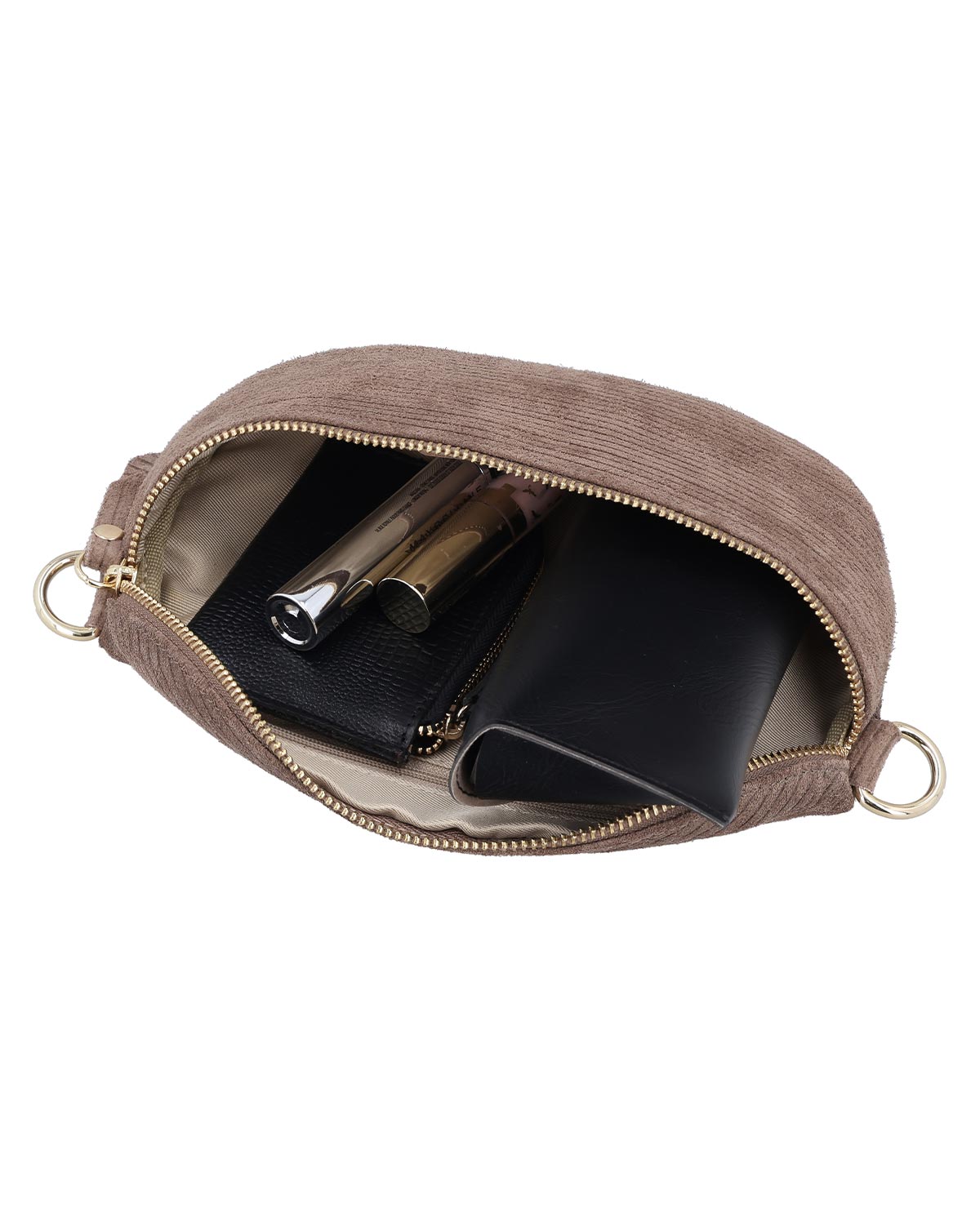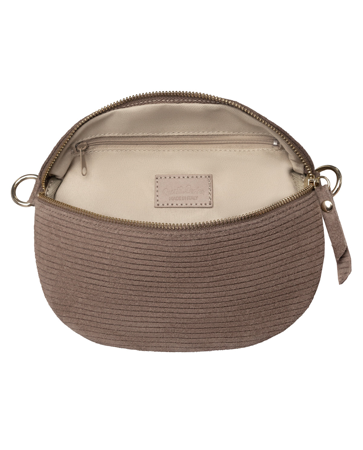 The "Brinja" shoulder bag impresses with its elegant design and high functionality. With the distinctive, semi-circular silhouette and the complete zipper along the top edge, it not only offers ample space for your essentials but also security for all your personal belongings. The high-quality leather gives it a noble appearance that perfectly fits into your modern everyday life. Inside, you will also find the finely embossed "Made in Italy" logo, which impressively underscores the origin and quality of this bag.