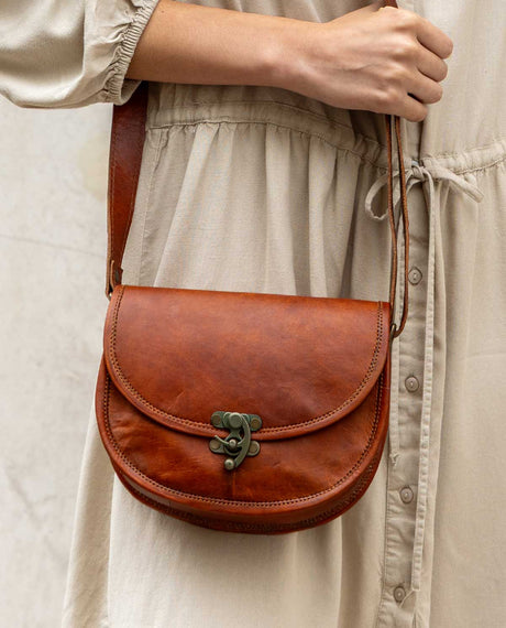 The handbags in the "Gusti Leder nature" line, as 100% natural products, are entirely committed to sustainability. This product line includes only handbags that are traditionally handcrafted in small family businesses in India. Individuality and uniqueness are therefore not empty phrases here. The goatskin used for this product is tanned, dyed, and fat-treated using plant-based methods . Therefore, it is quite possible that your new Gusti Leder nature bag will initially give off a somewhat intense leather smell. This will dissipate with regular wear. Minor "imperfections" in the surface and structure of your new leather handbag, which are unavoidable due to the outdoor farming of the goats, contribute significantly to its individual vintage look .