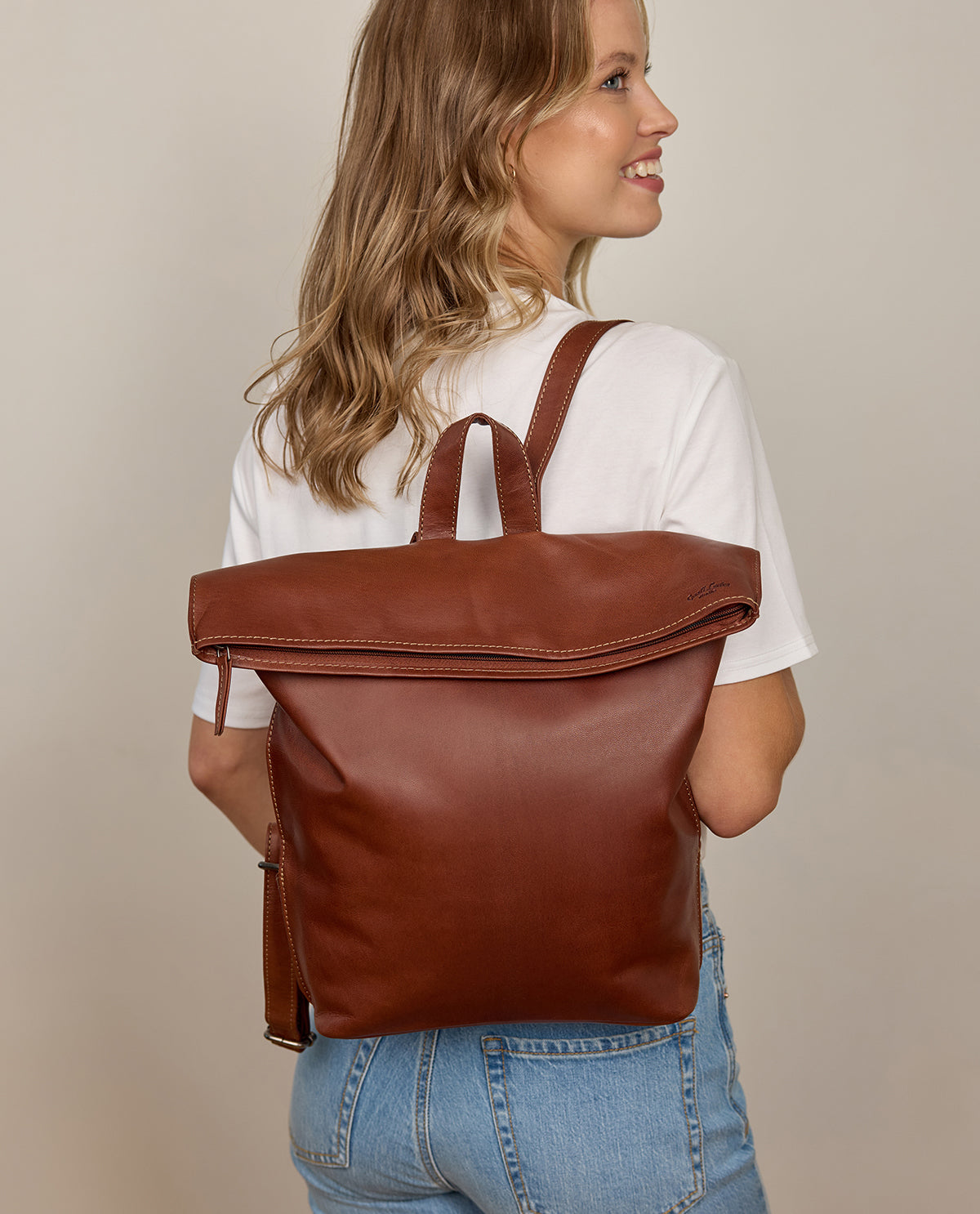 Backpack bike bag leather backpack city backpack with plate women’s Klickfix compatible brown leather