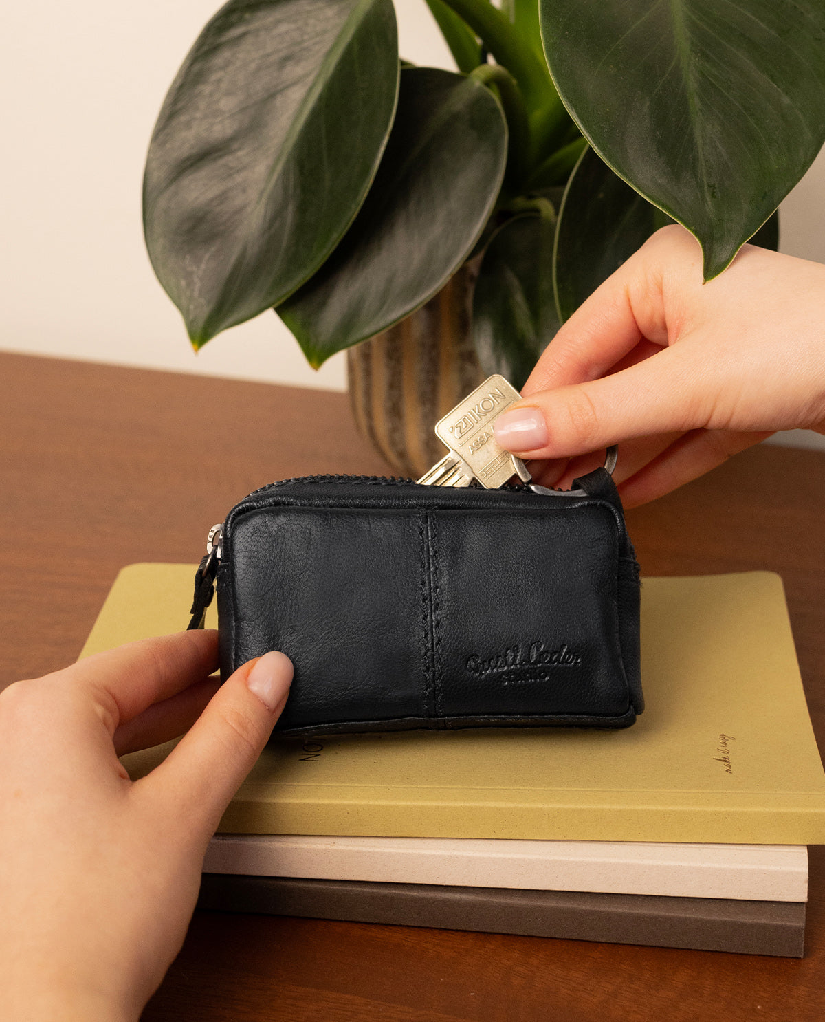 The "Butler" is a perfect key case. On the one hand, it's a practical and handy way to store your keys , protecting the rest of your bag from scratches from the teeth of your keys. On the other hand , the additional zippered compartment offers a place to keep a little cash when you don't want to carry your wallet.