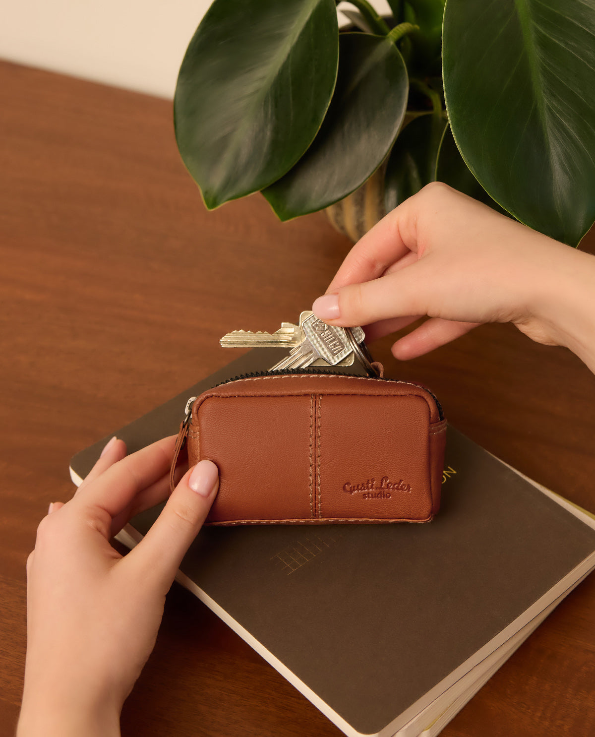 “Butler” is compact and pocket-sized and has two separate zipped compartments. The bigger compartment has a key ring inside so you can attach your keys, the smaller compartment is perfect for some spare change, a couple of notes, or a voucher. The high-quality leather used to create this accessory gives “Butler” extra support and stability, making it a durable everyday companion—a Butler even.