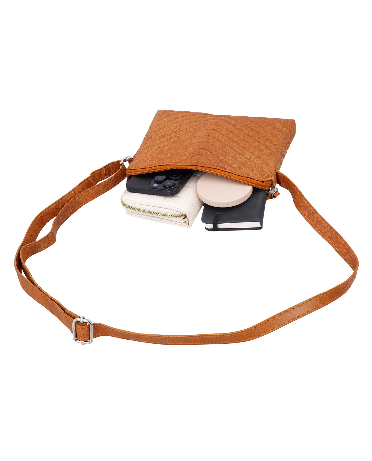 Inside, a zippered compartment and additional slip pockets ensure that your essentials are neatly stored and remain quickly accessible. The adjustable shoulder strap adapts to your comfort and allows you to carry "Aline" classically over the shoulder or loosely across the body. The secure zipper reliably protects your contents and rounds off the bag's functionality. "Aline" is a small leather handbag that impresses with its pattern, color, and well-thought-out layout.