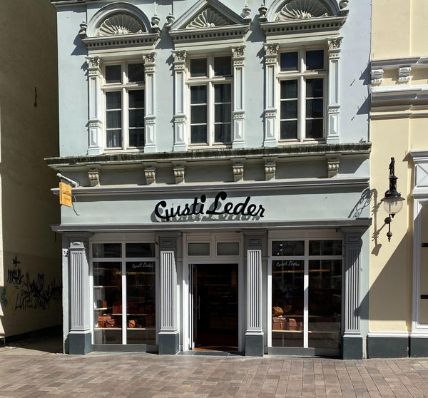 In our quaint shop on Grossestraße, you will find a wide selection of unique leather products. From wallets to fanny packs to city backpacks, we have everything your heart desires. Come by, smell the scent of leather goods, and convince yourself of our products. We look forward to your visit! Your Gusti Team Flensburg