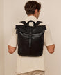 "Henning" is a medium-sized roll-top backpack made of durable cowhide leather, perfectly designed to deliver in the hustle and bustle of the city or the confines of the subway during rush hour. With its well-thought-out division, it offers you ample space to easily store your A4 documents, 15" notebook, a handful of books, and a large water bottle in the spacious main compartment, while an additional slip pocket and zippered inner compartment help you organize your belongings systematically, ensuring everything has its proper place.