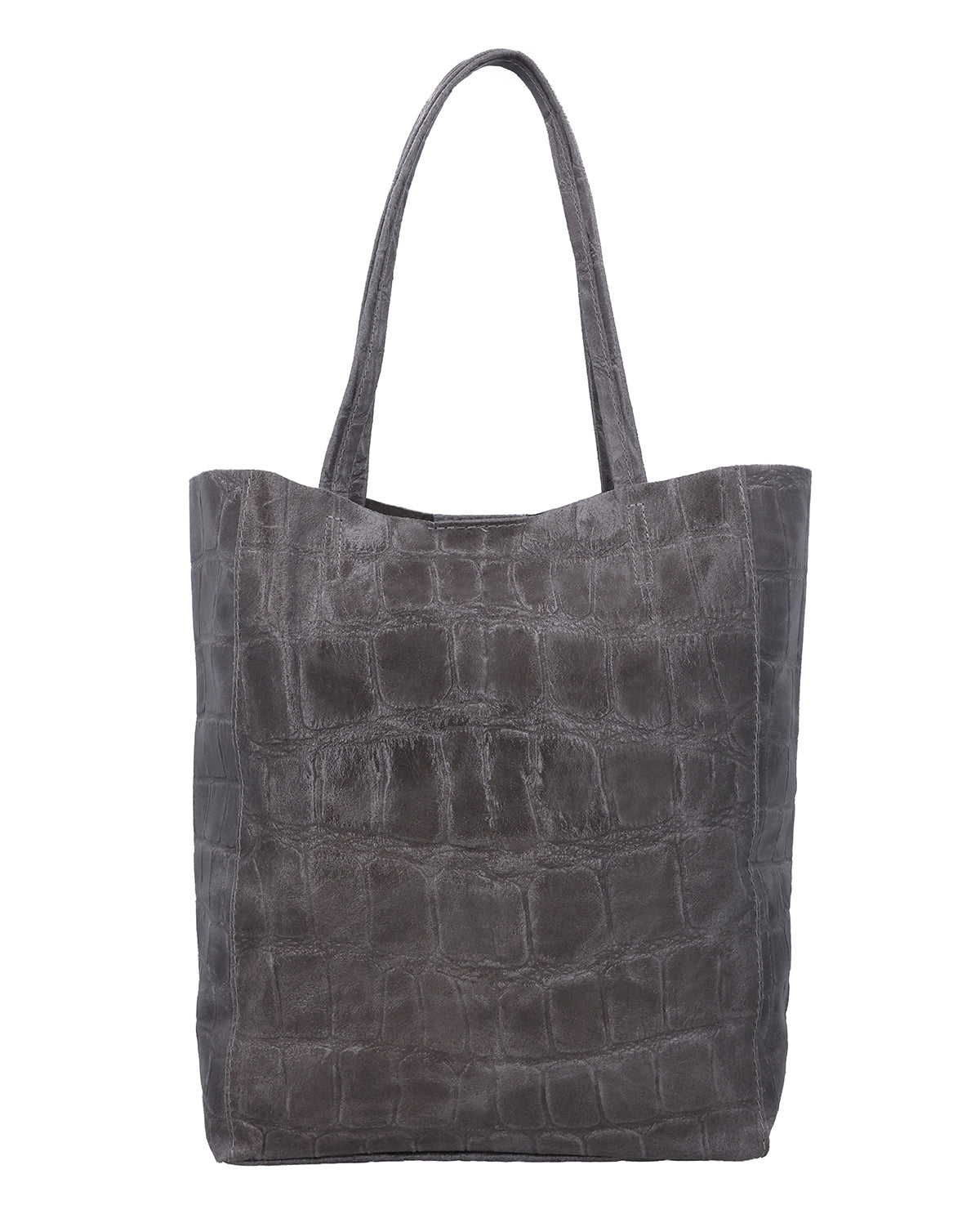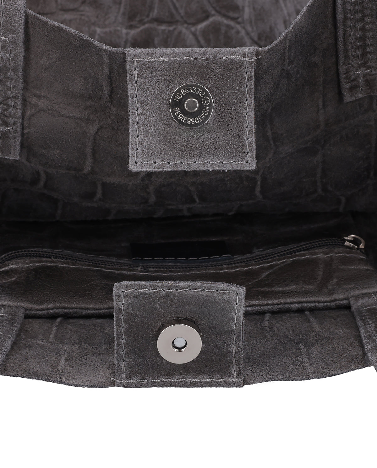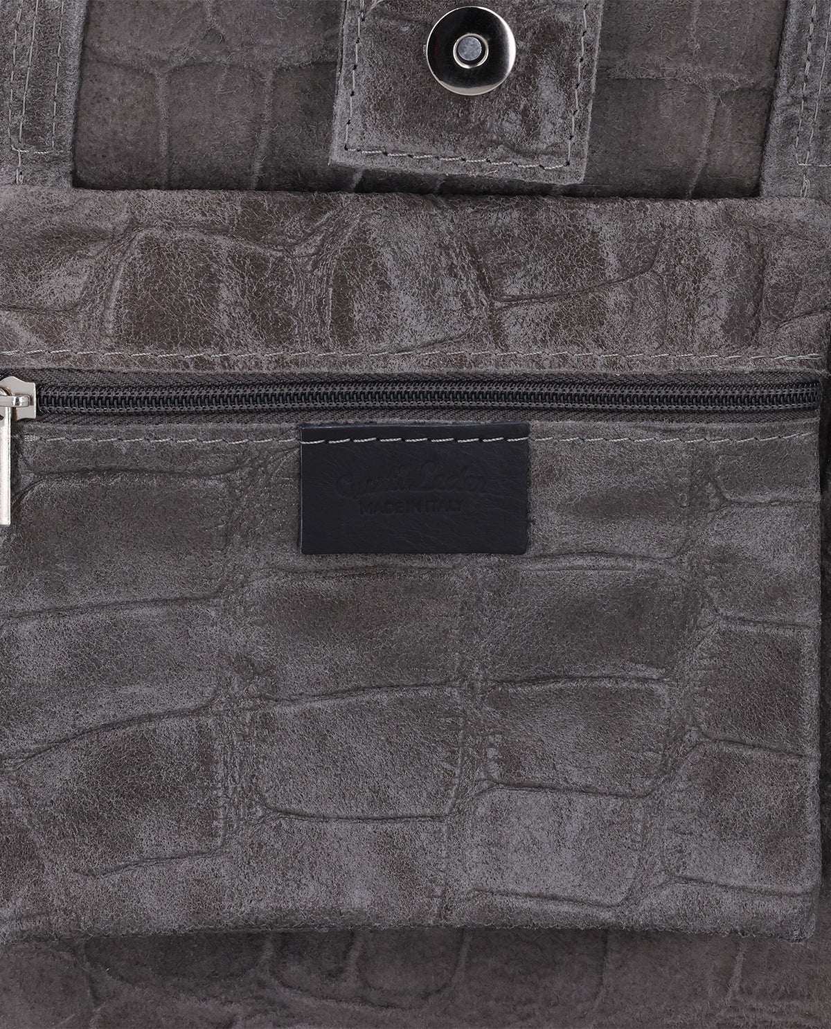 The “Vilma” handbag is a gray leather handbag with a crocodile-look finish for women that impresses with its clean lines. It’s a reliable companion for everyday life—whether you’re strolling through town, at the office, or heading to a spontaneous get-together. The magnetic main closure allows for quick and easy opening and closing, so you can easily access your essentials at any time. Thanks to its minimalist design, “Vilma” is versatile and effortlessly adapts to your style.